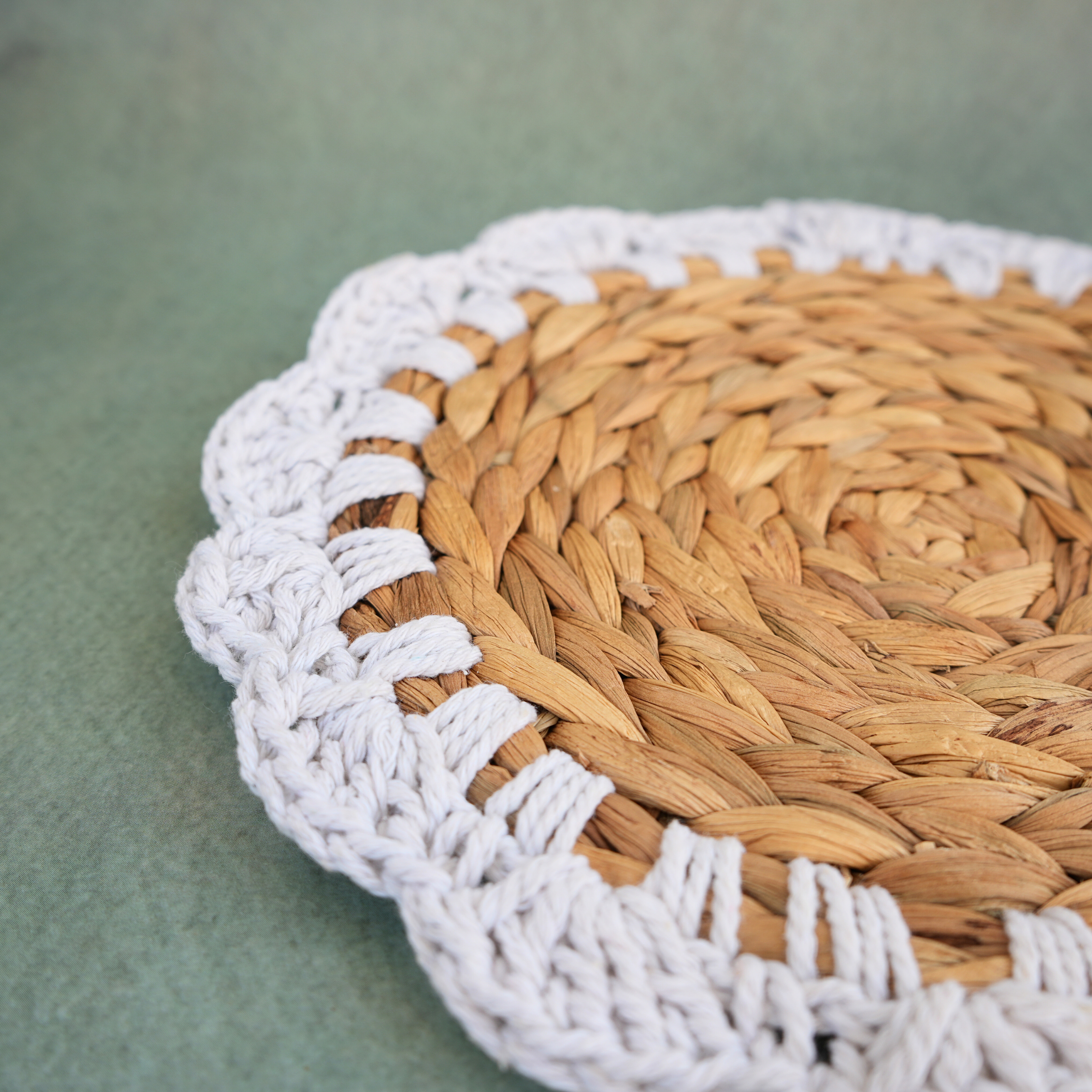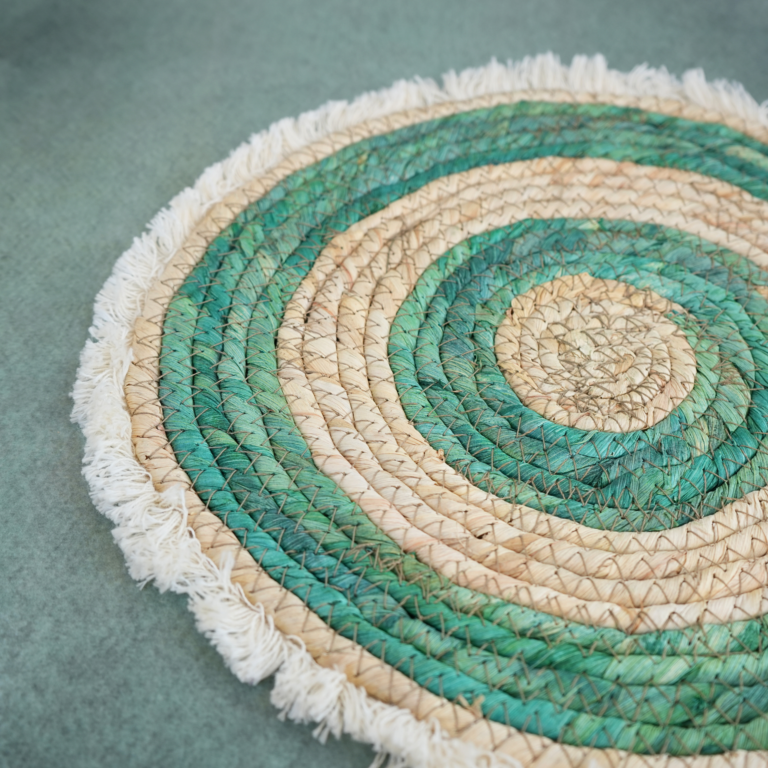 Emerald Green PU Leather & Rattan Coasters - Set of 6