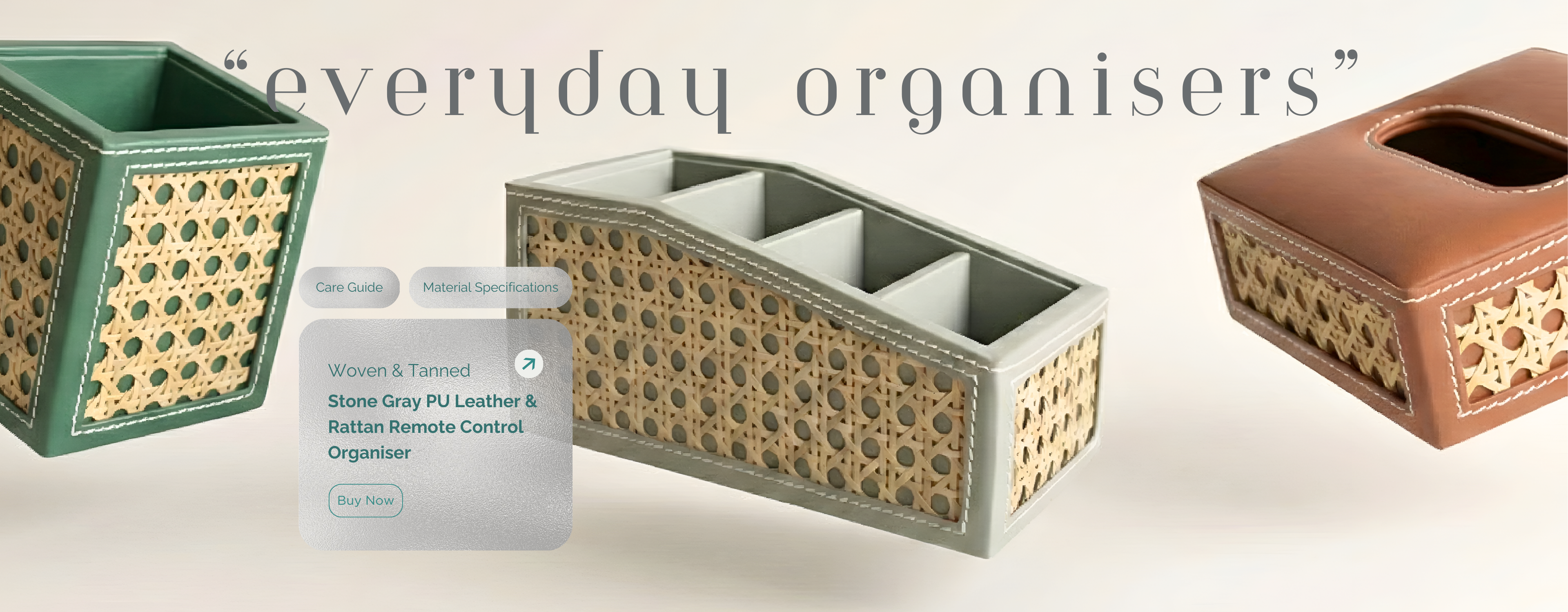 Emerald Green PU Leather & Rattan Remote Control Organiser
