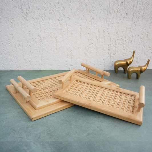 Handcrafted Rattan Serving Tray- Set of 3