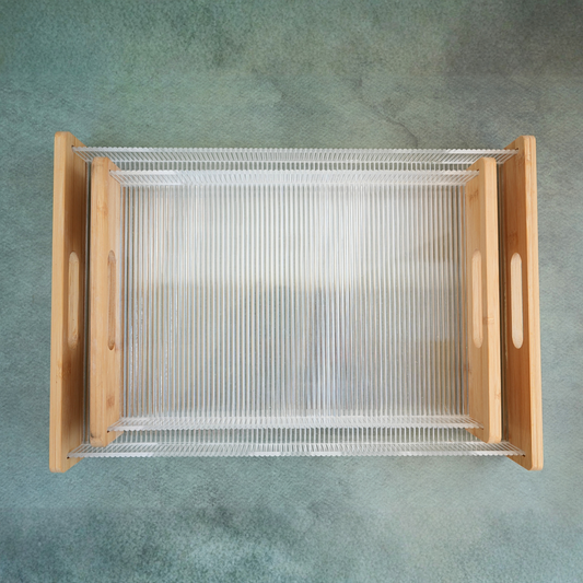 Ribbed Acrylic and Wooden Serving Tray- Set of 2