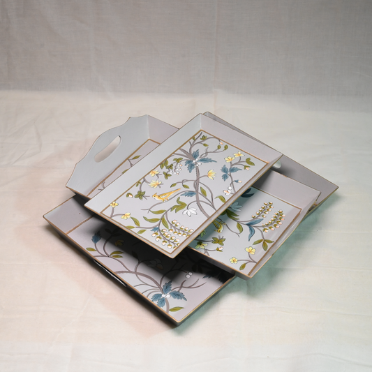 Hand-painted Gray Blossom Serving Tray- Small