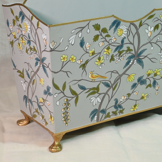 Hand-painted Gray Blossom Magazine Holder