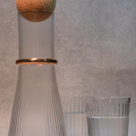 Ribbed Carafe with Gold Rim