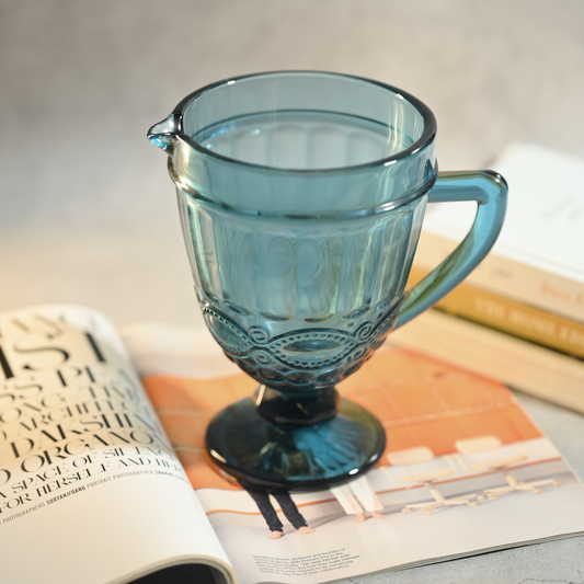 Blue Tinted Textured Water Pitcher