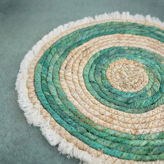Sage Palm Leaves Enamel-Coated Wooden Serving Tray- Set of 2