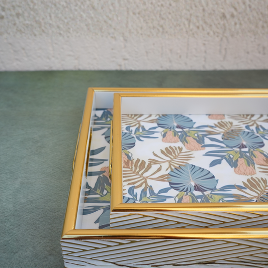 Tropica Floral Enamel-Coated Wooden Serving Tray- Set of 2