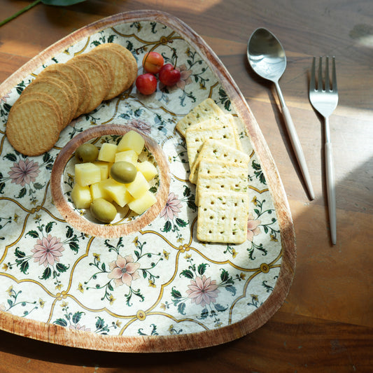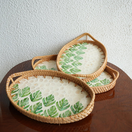 Small Oval Mother-of-Pearl & Cane Serving Tray - Botanic