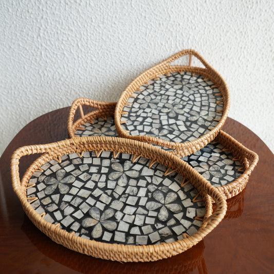 Medium Oval Mother-of-Pearl & Cane Serving Tray - Noir