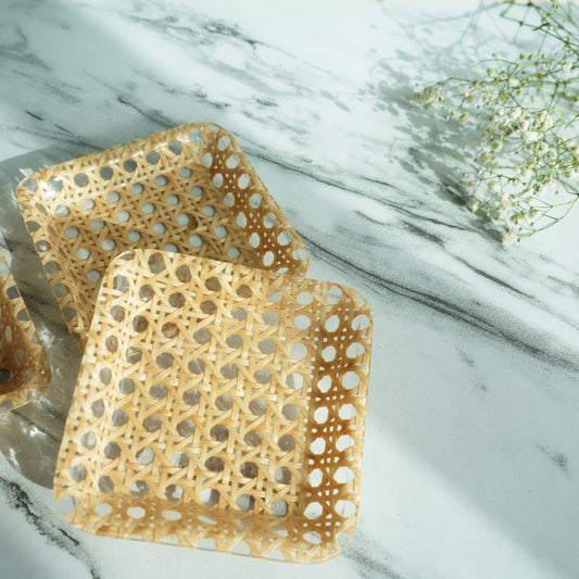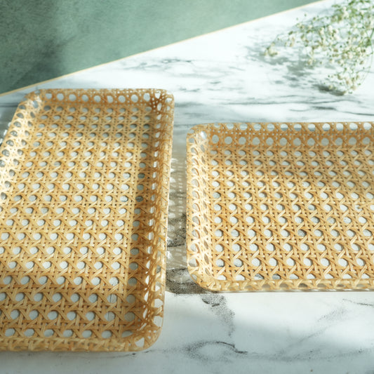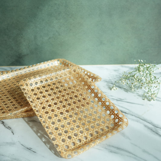 Rattan Ribbed Acrylic Serving Tray- Regular set