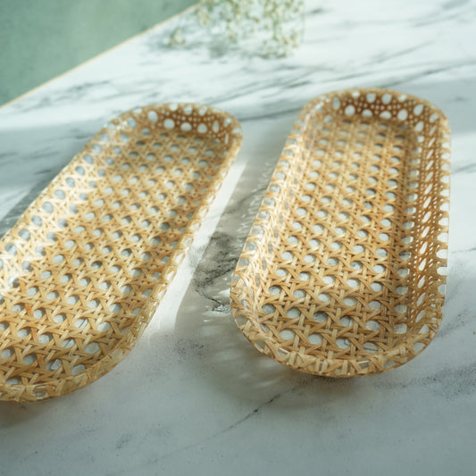 Rattan Ribbed Acrylic Oblong Serving Tray- Pack of 2