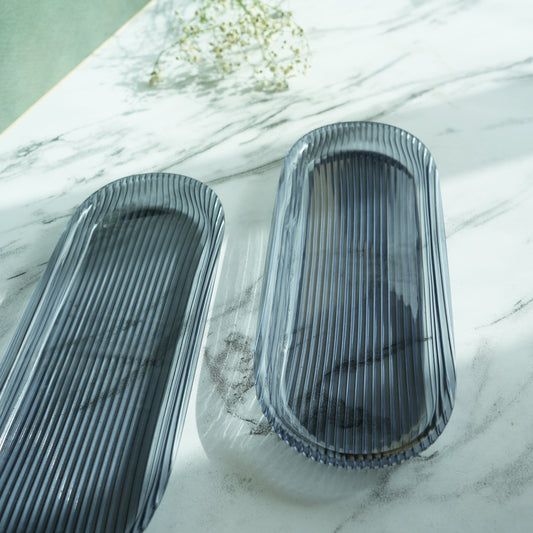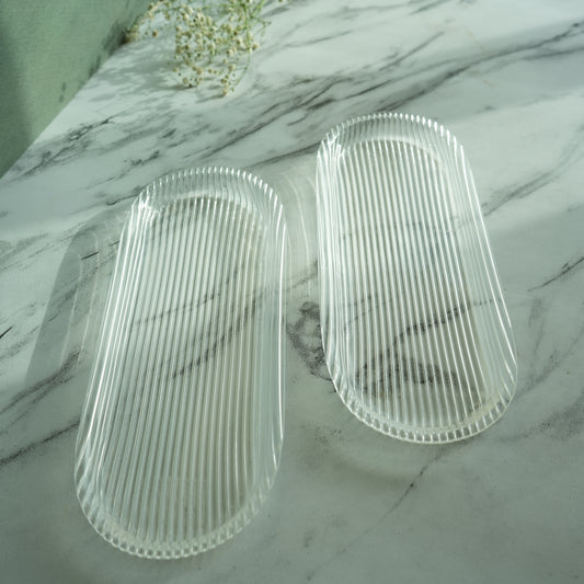 Clear Ribbed Acrylic Oblong Serving Tray- Pack of 2