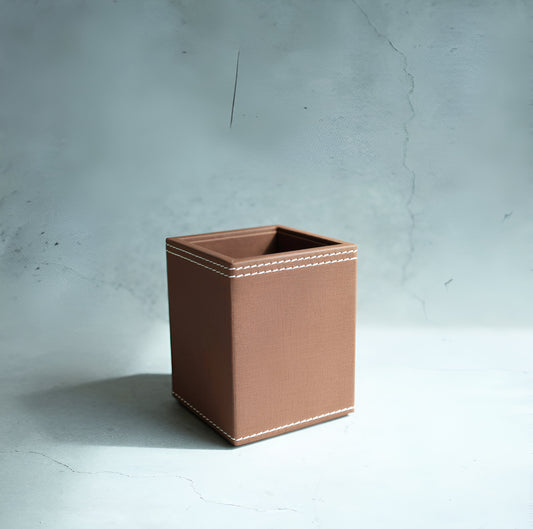 Umber Brown PU Leather Stationery Holder