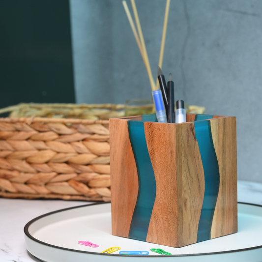 Turquoise Resin and Wooden Stationery Holder