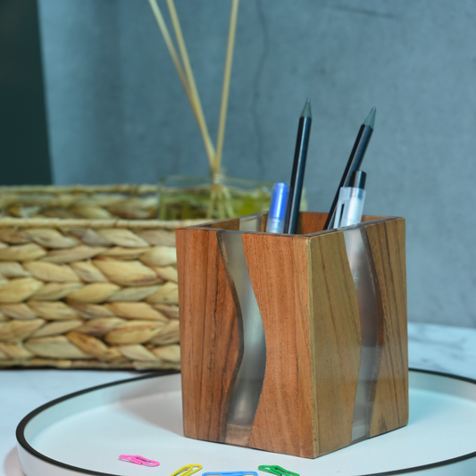 Brown Translucent Resin and Wooden Stationery Holder