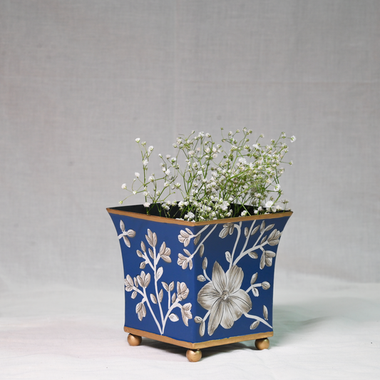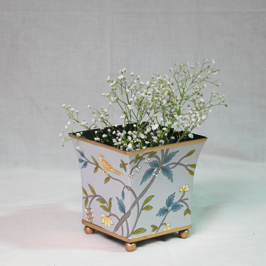 Hand-painted Gray Blossom Planter