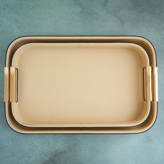 Ribbed Acrylic and Tan PU Leather Serving Tray- Set of 2