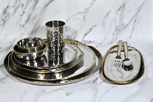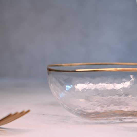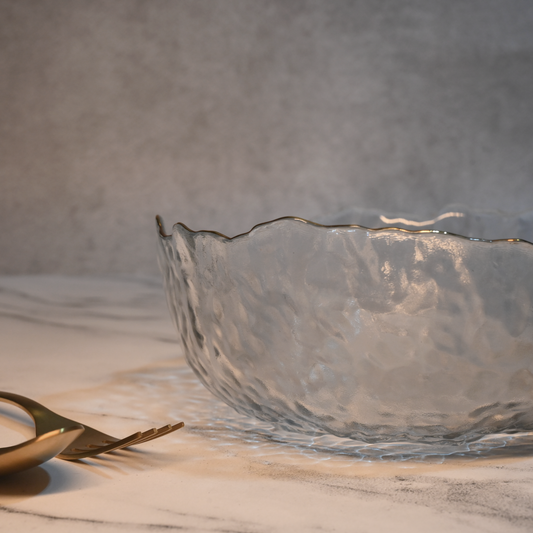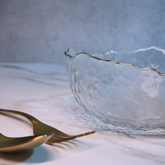 Hammered Steel Wide Salad Bowl with Gold Detailing