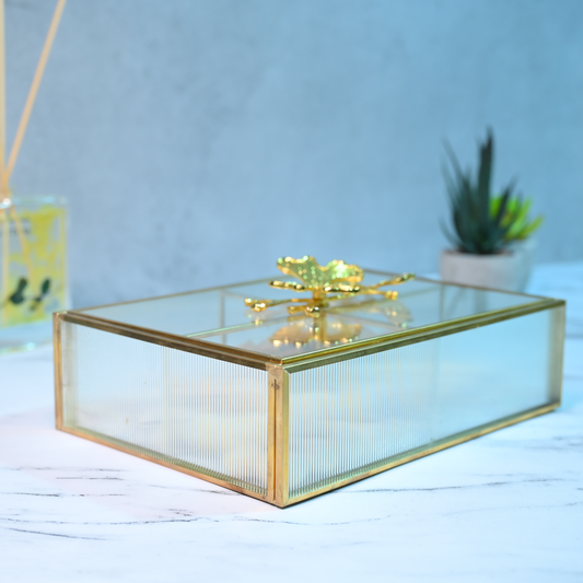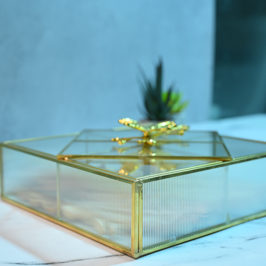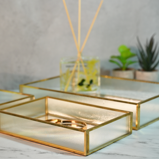Ribbed Serving Tray with Gold Rim- Set of 3