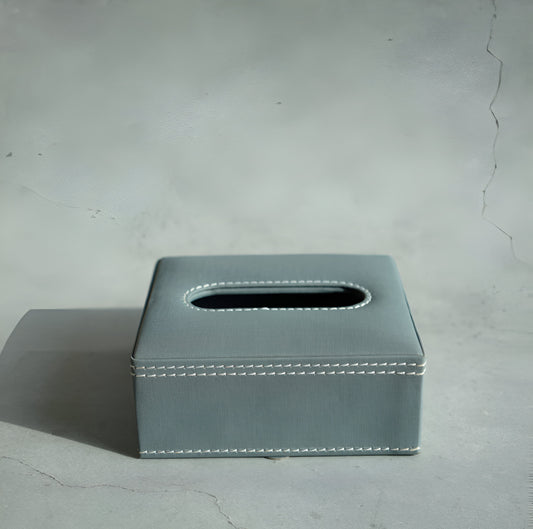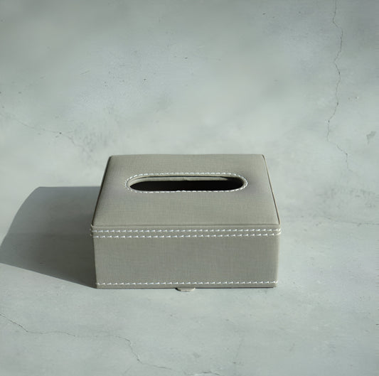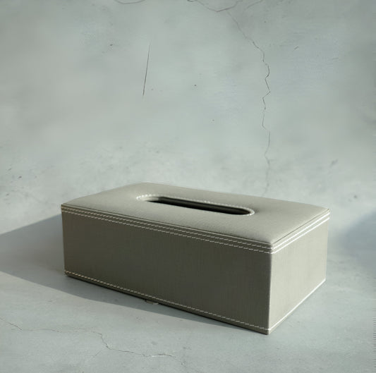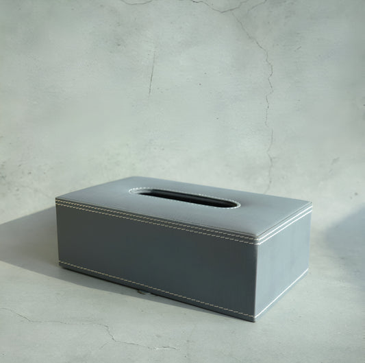 Stone Gray PU Leather Tissue Holder with Weighted Bar