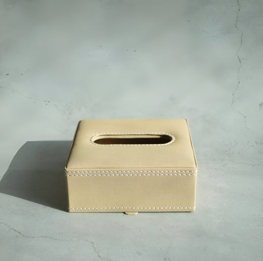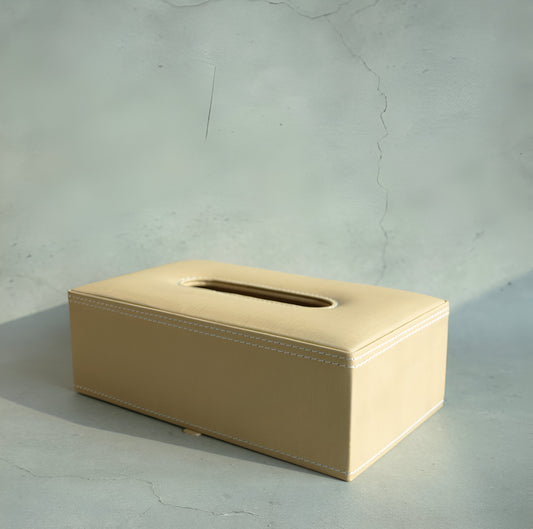 Sand Beige PU Leather Tissue Holder with Weighted Bar