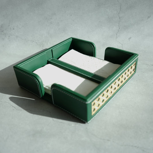 Emerald Green PU Leather & Rattan Tissue Holder with Weighted Bar
