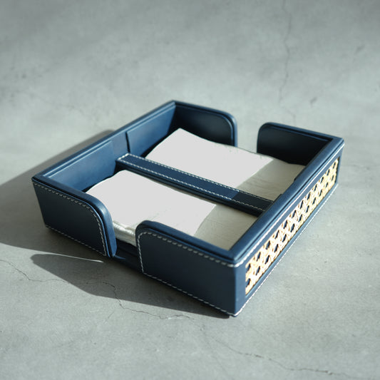 Steel Blue PU Leather & Rattan Tissue Holder with Weighted Bar
