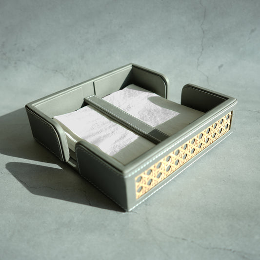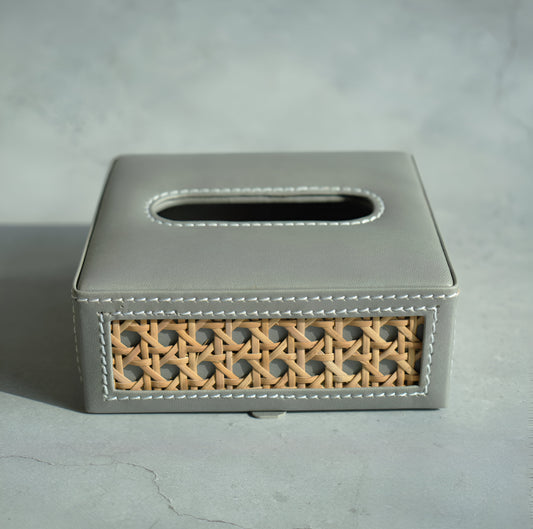 Stone Gray PU Leather & Rattan Tissue Box - Square
