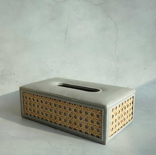Stone Gray PU Leather & Rattan Tissue Box - Rectangle