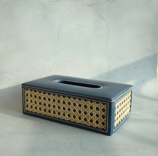Steel Blue PU Leather & Rattan Tissue Box - Rectangle