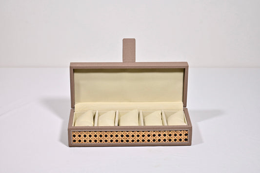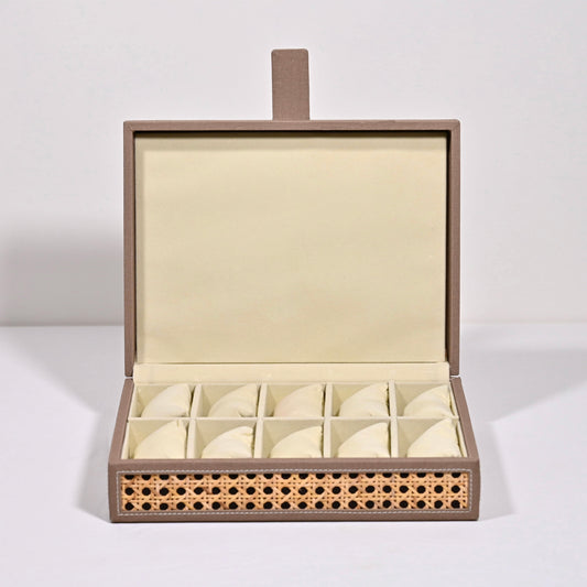 Dark Beige Rattan Watch Organiser (Large)