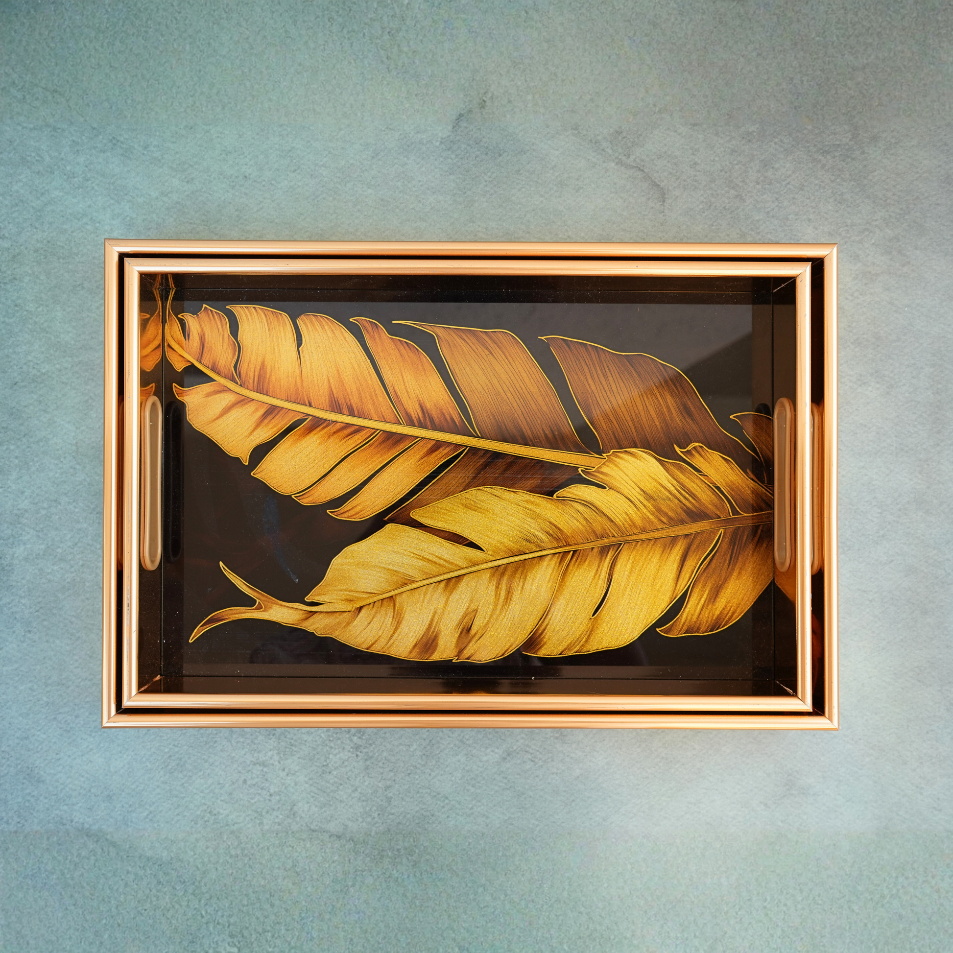 Golden Fleur Enamel-Coated Wooden Serving Tray- Set of 2
