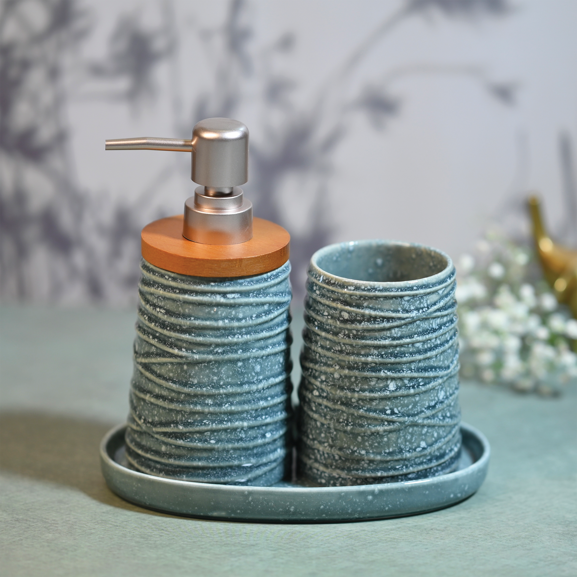 Enhance your bathroom decor with our Ash Grey Textured Ceramic 3-Piece Bathroom Set. Featuring a dispenser, toothbrush stand, and soap dish, this set combines a refined textured design with a sophisticated ash grey hue. Crafted from quality ceramic, it offers both style and functionality, bringing a modern and elegant touch to your space.