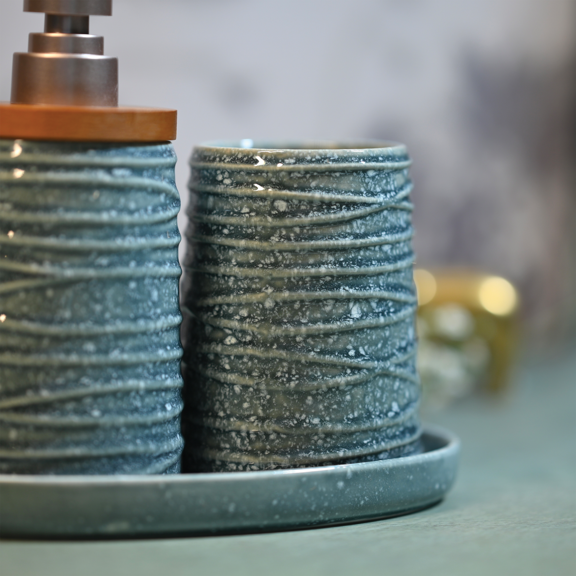Wipe your Ceramic Bathroom Set with a soft, damp cloth to keep it clean and maintain its textured finish. Avoid using abrasive cleaners or harsh chemicals to protect the ceramic surface. Dry thoroughly after cleaning to prevent water spots.