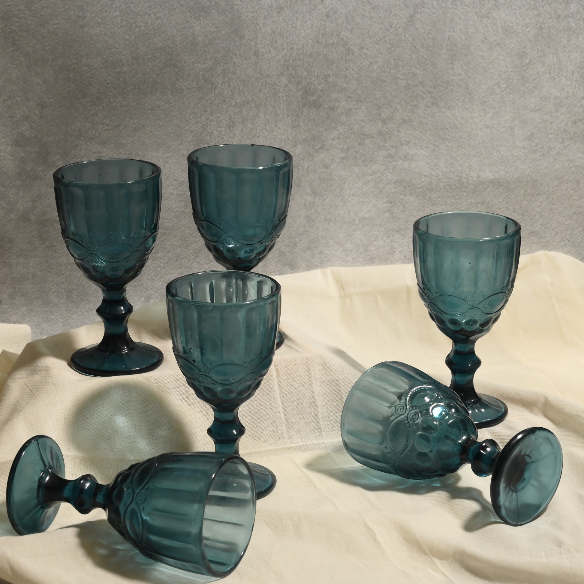 Blue Tinted Textured Cocktail Glass- Broad- Set of 6