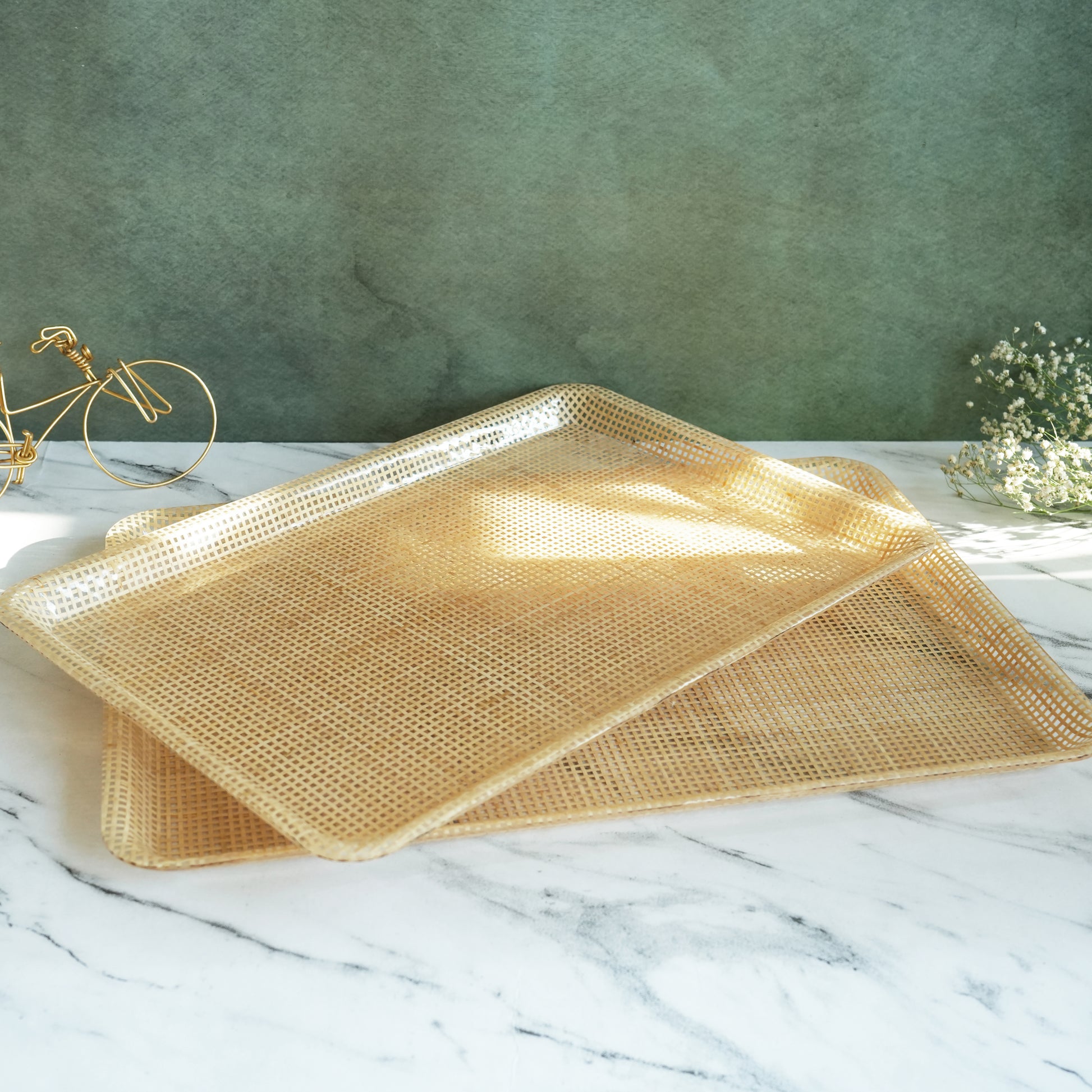 Box Weave Rattan Acrylic Serving Tray- Jumbo set