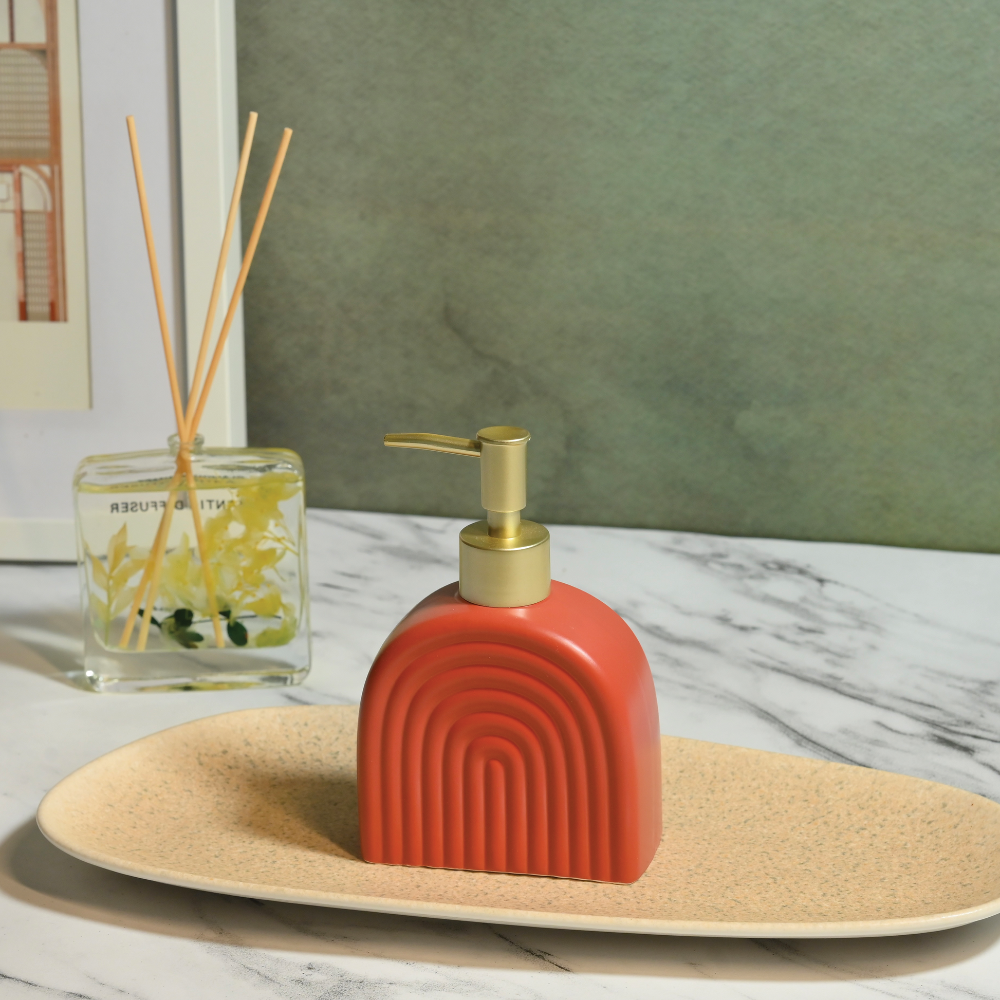 Add a pop of color to your bathroom or kitchen with our Crimson Textured Ceramic Liquid Soap Dispenser. Crafted with a stylish textured design and a vibrant crimson finish, this dispenser combines elegance and functionality, perfect for elevating your space.