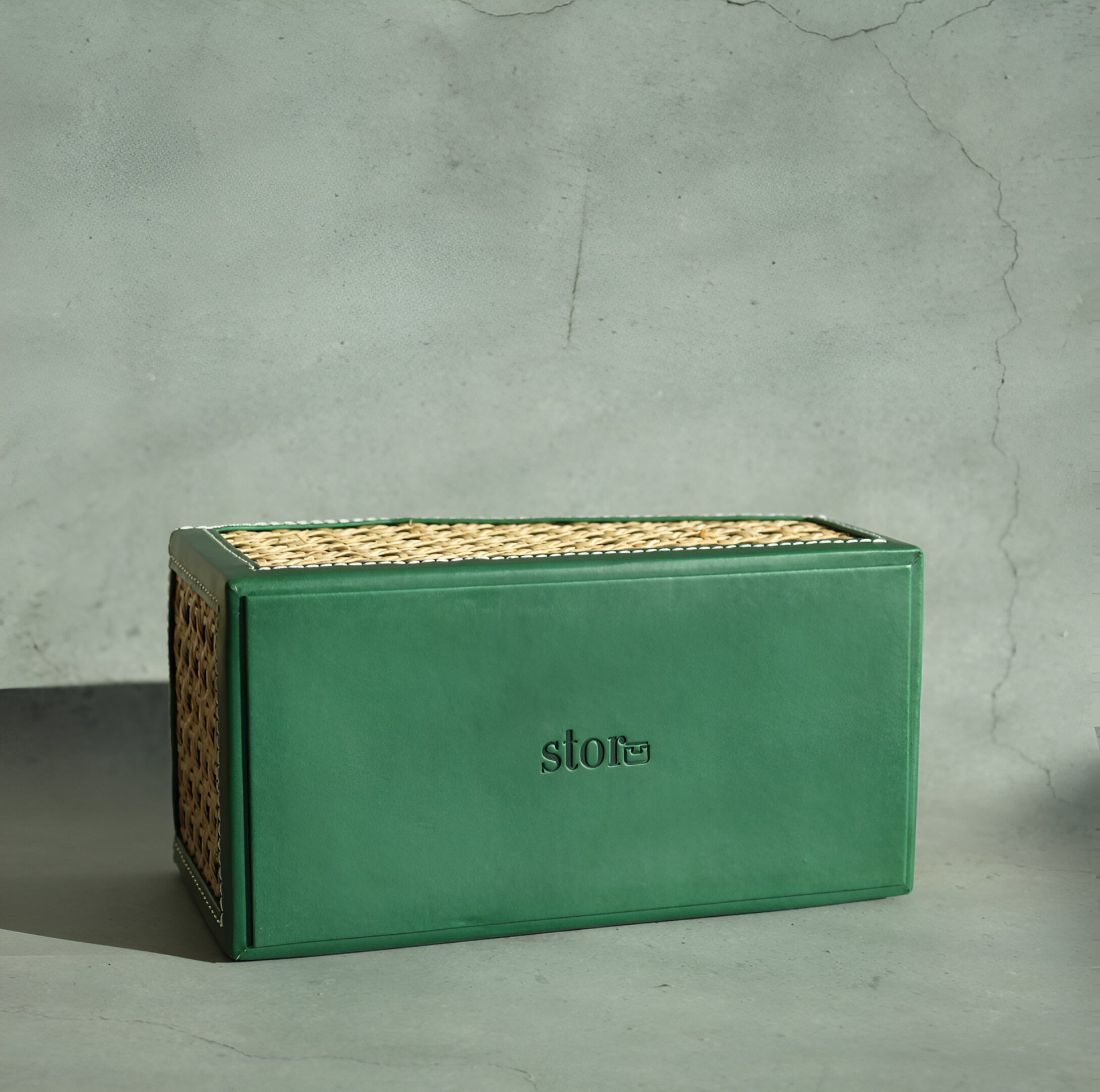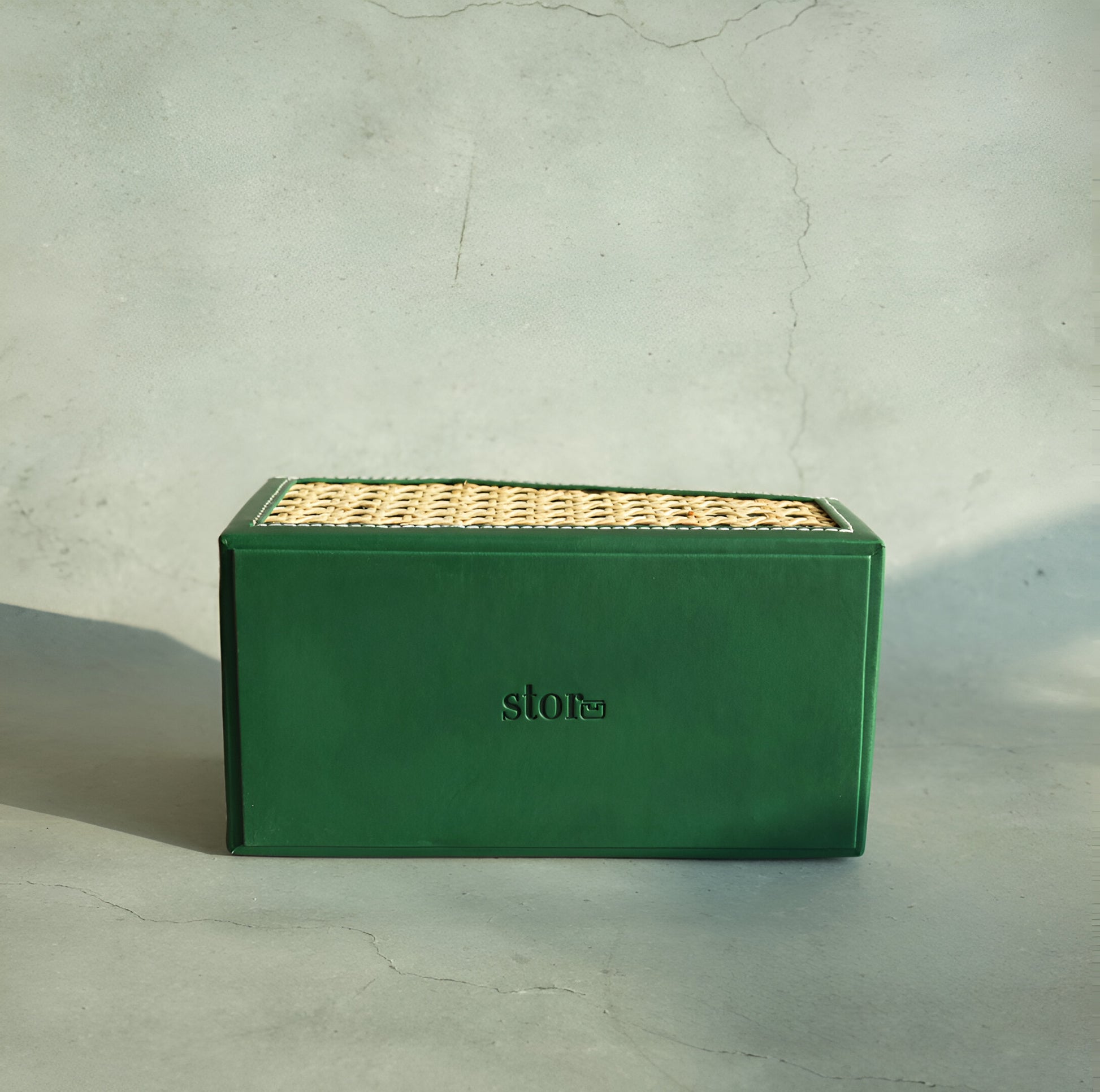 Emerald Green PU Leather & Rattan Remote Control Organiser