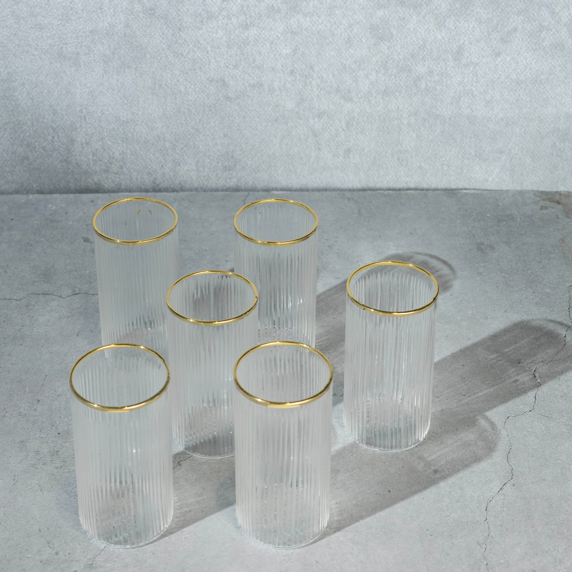 Tall Clear Ribbed Cocktail Glass with Gold Rim- Set of 6