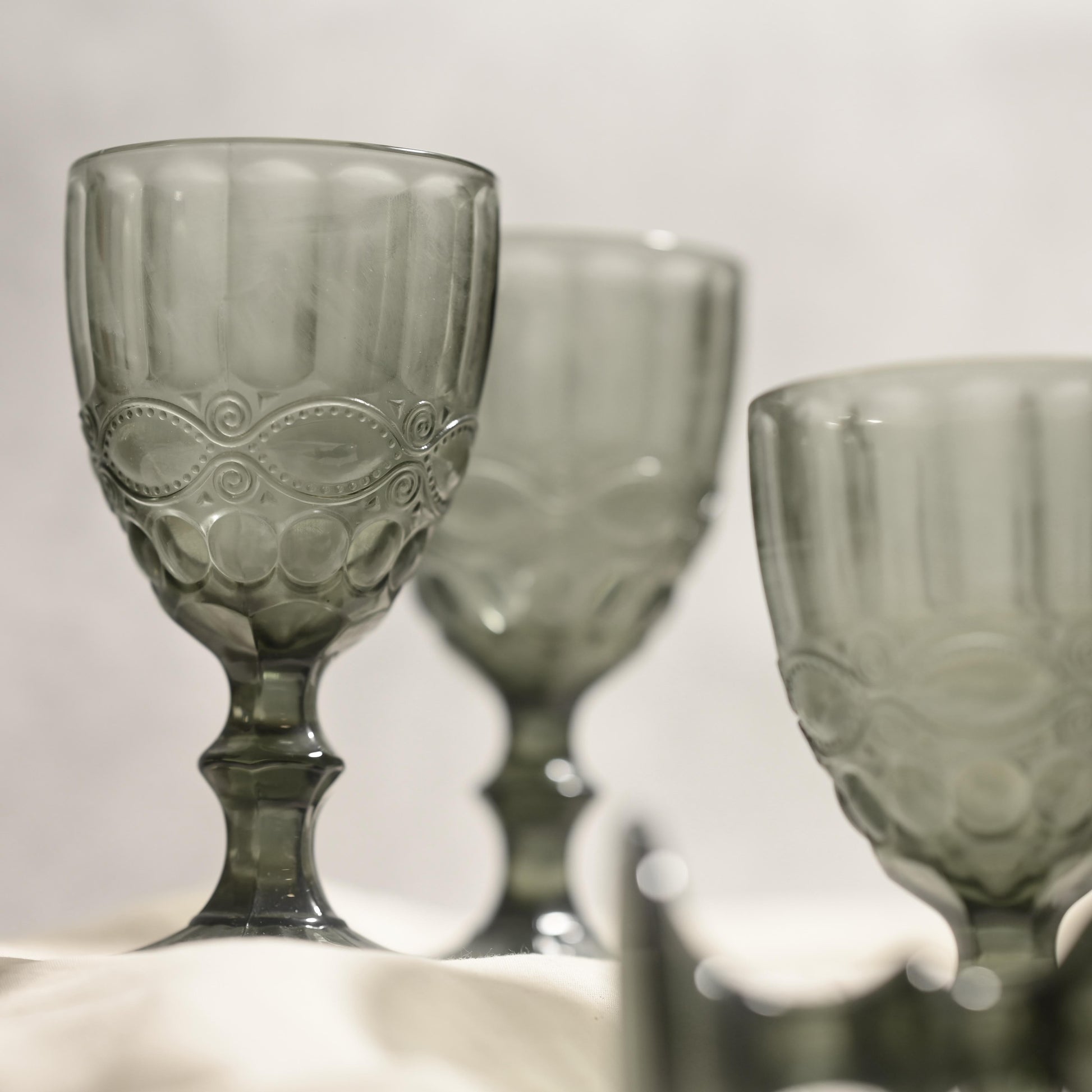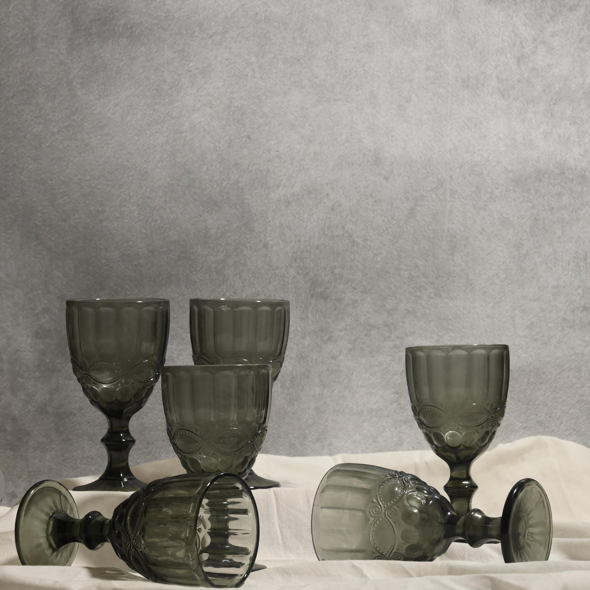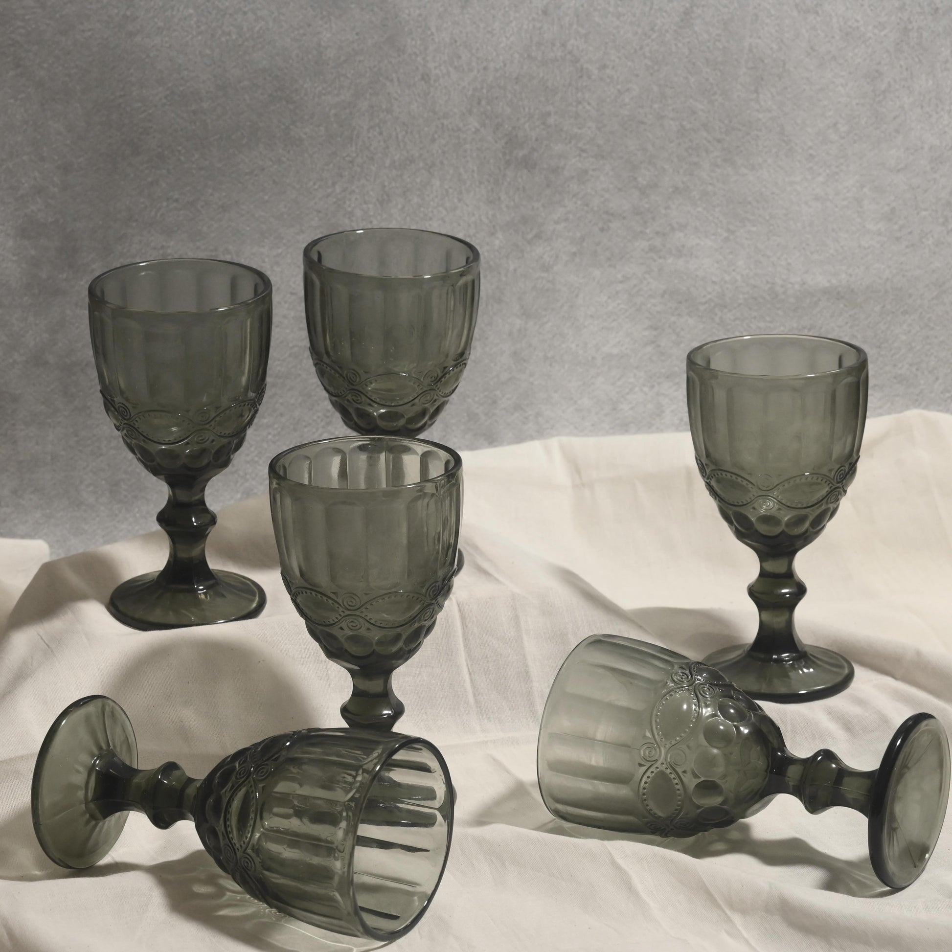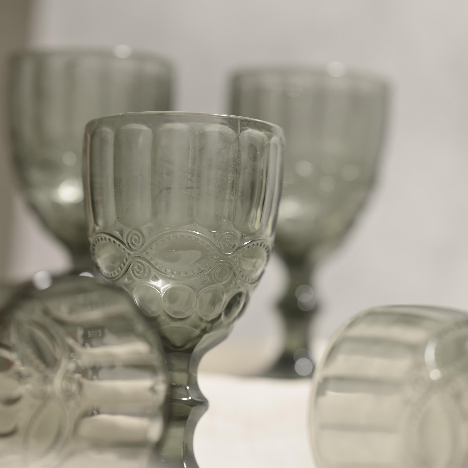 Gray Tinted Textured Cocktail Glass- Broad- Set of 6