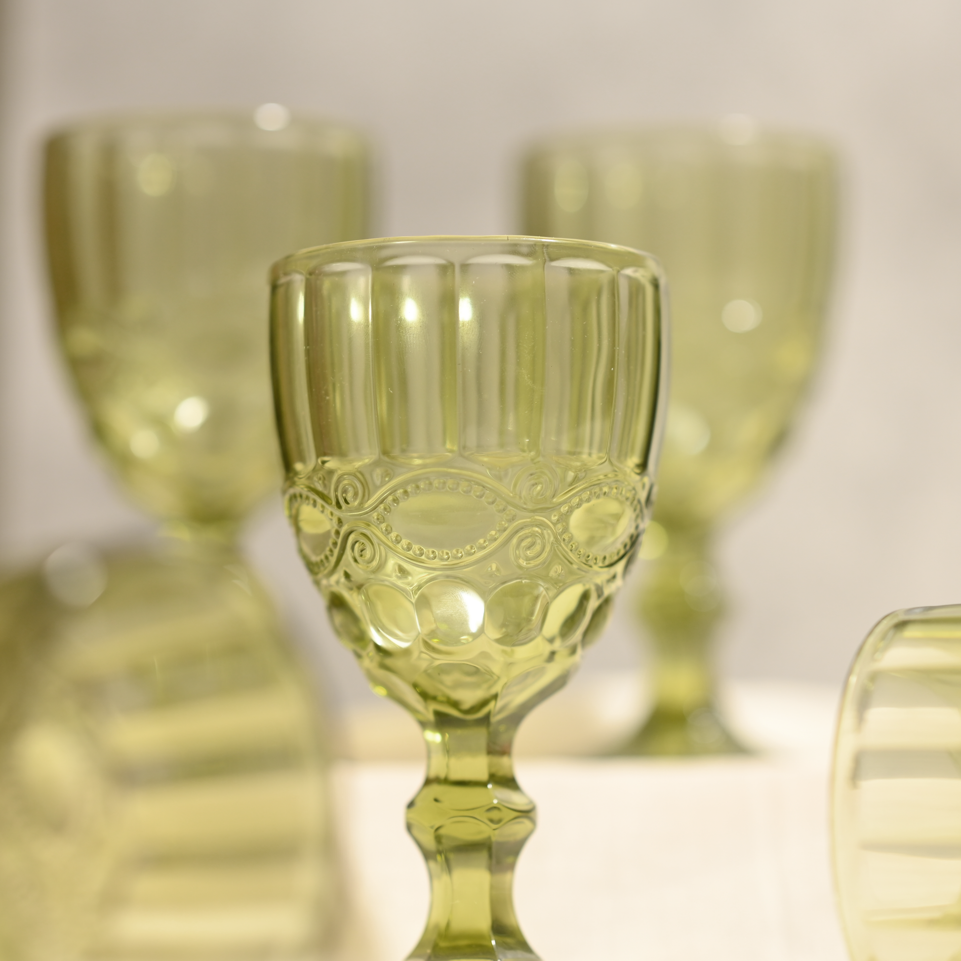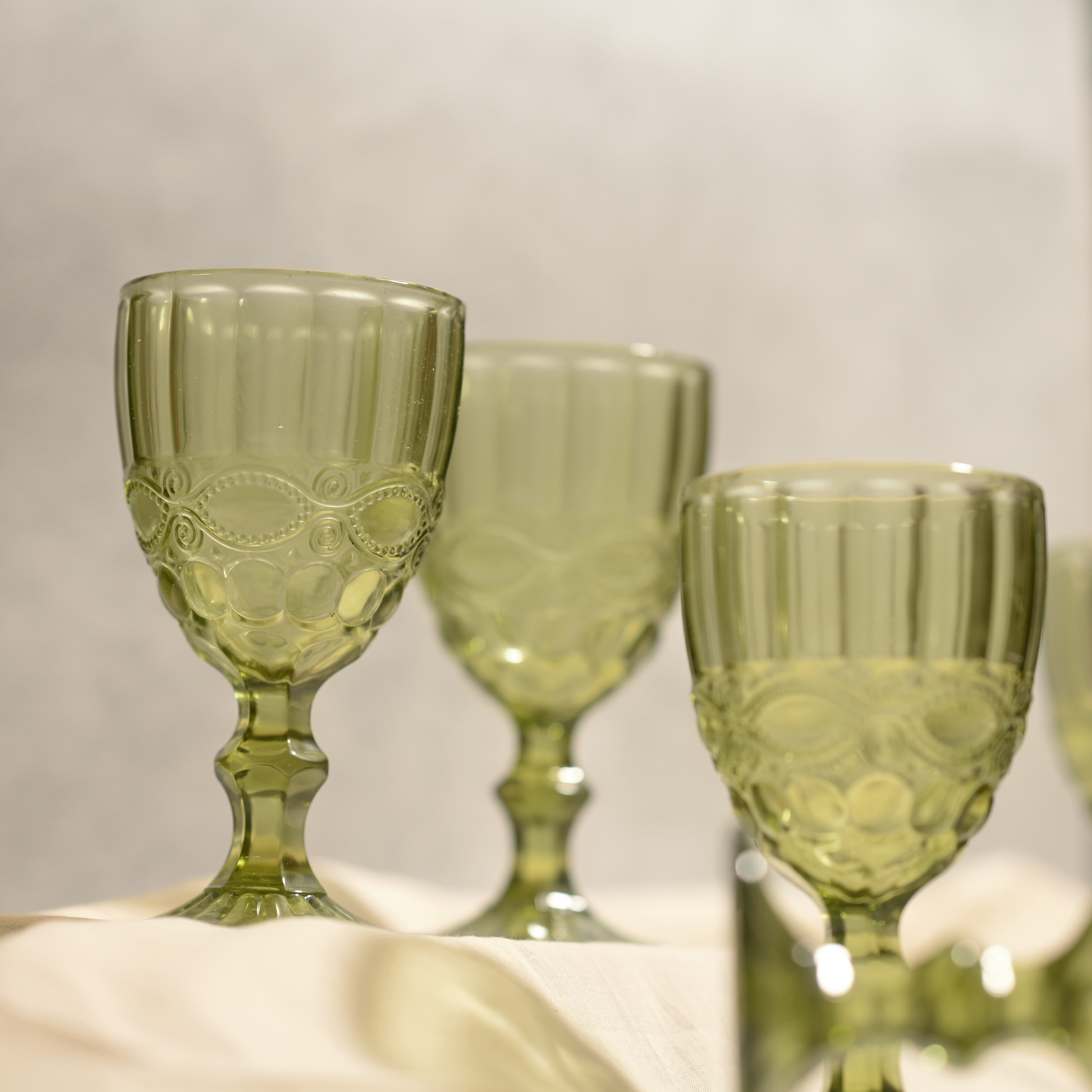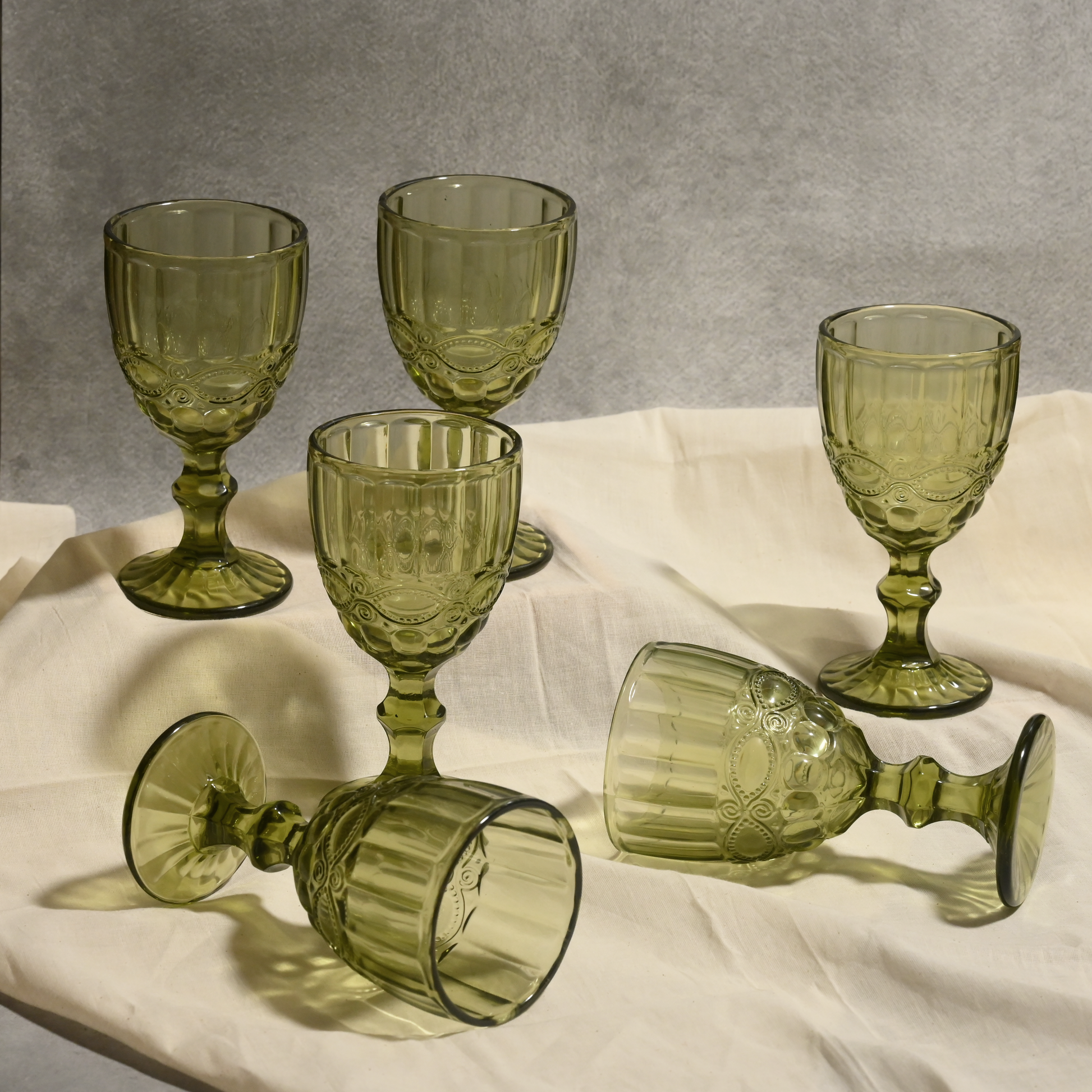 Green Tinted Textured Cocktail Glass- Broad- Set of 6