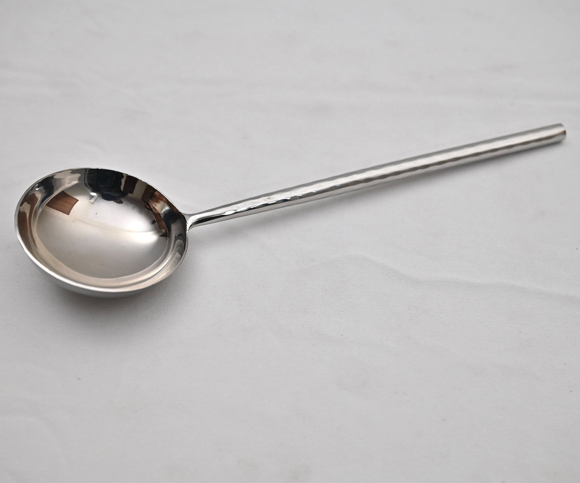 The Hammered Stainless Steel Serving Ladle combines practicality with unique style. Featuring a distinctive hammered texture and a durable stainless steel construction, this ladle is perfect for serving soups, stews, and sauces with elegance. Ideal for adding a touch of sophistication to any meal.