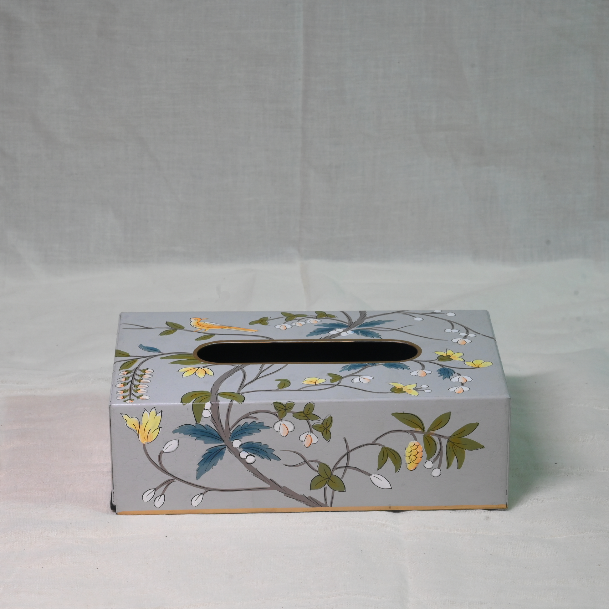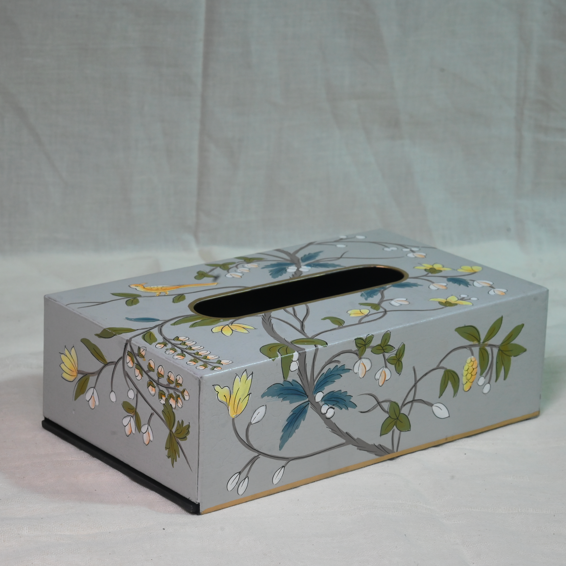 Hand-painted Gray Blossom Tissue Box