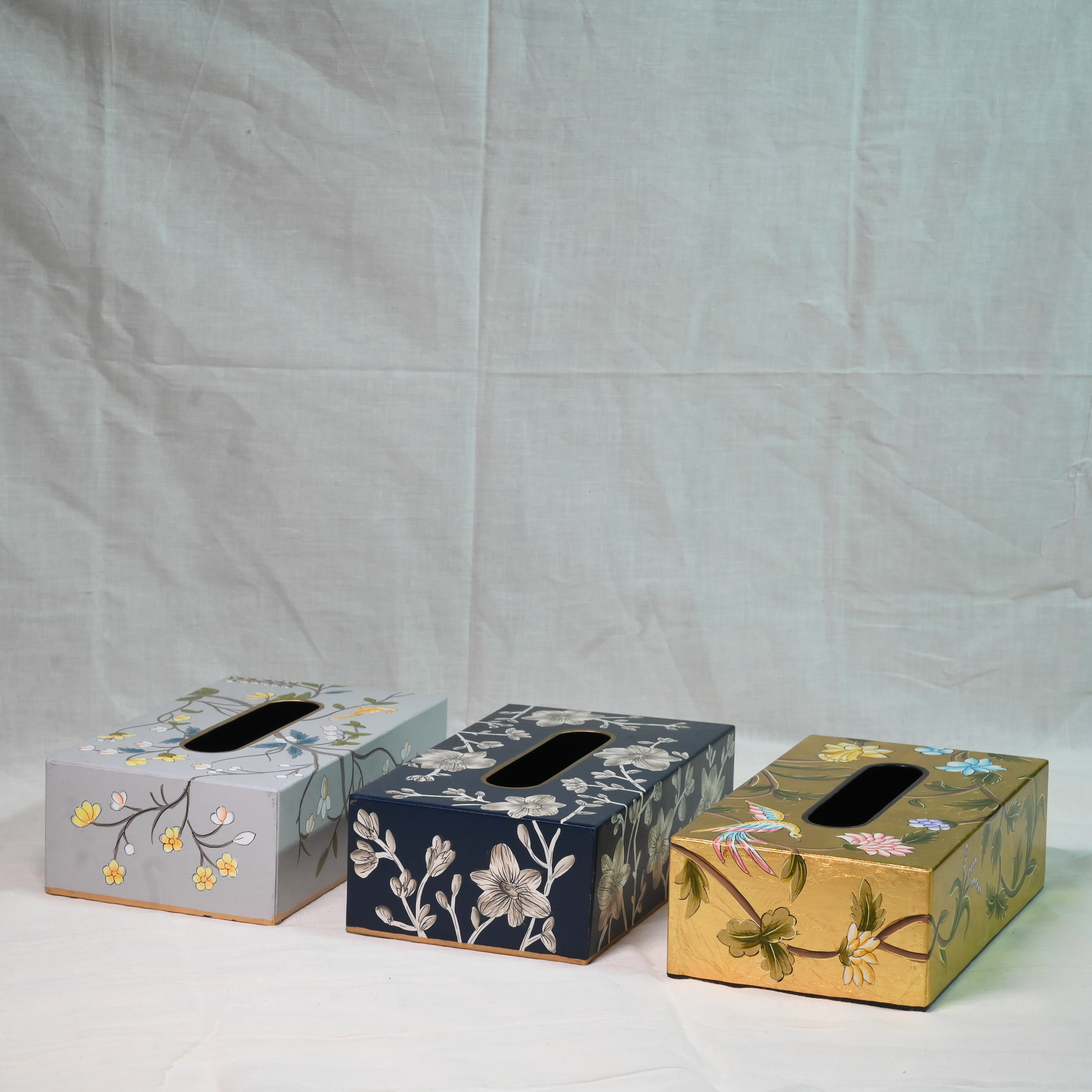 Elevate your decor with our Hand-Painted Gray Blossom Tissue Box, featuring delicate floral designs on a sleek gray backdrop. This handcrafted piece combines functionality and artistry, adding a touch of elegance to any room or table setting.