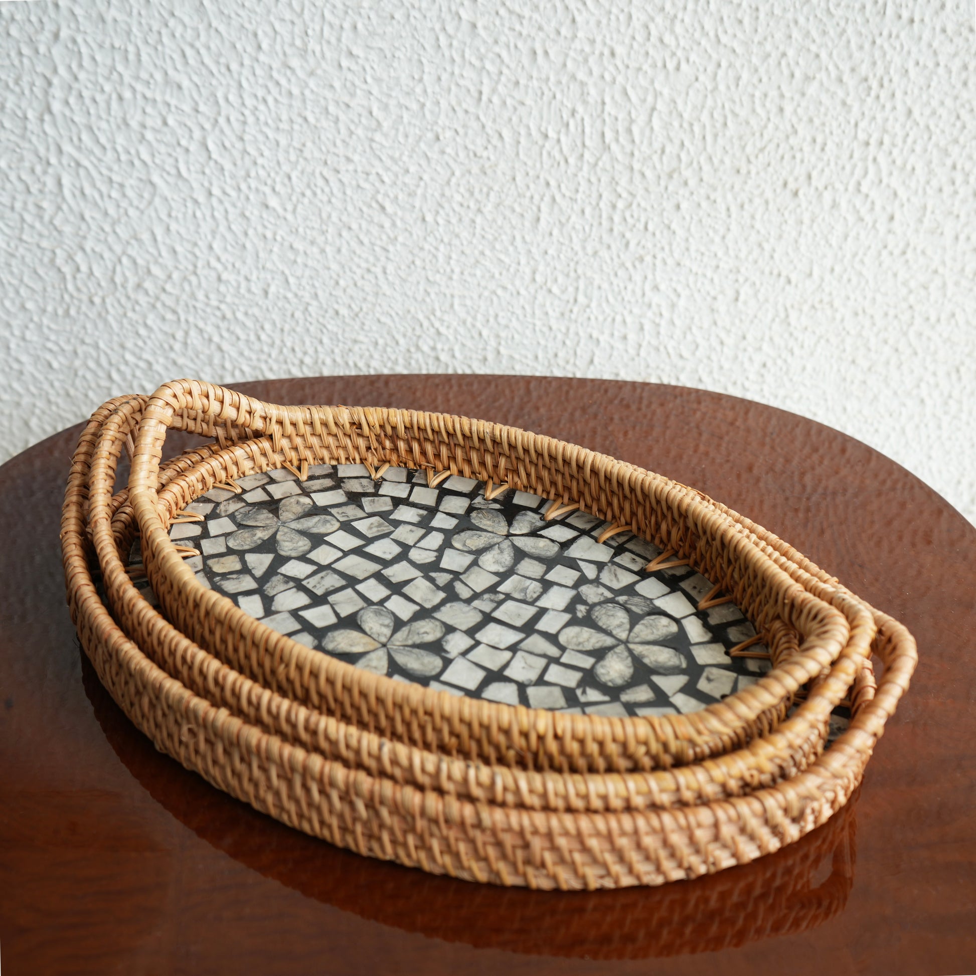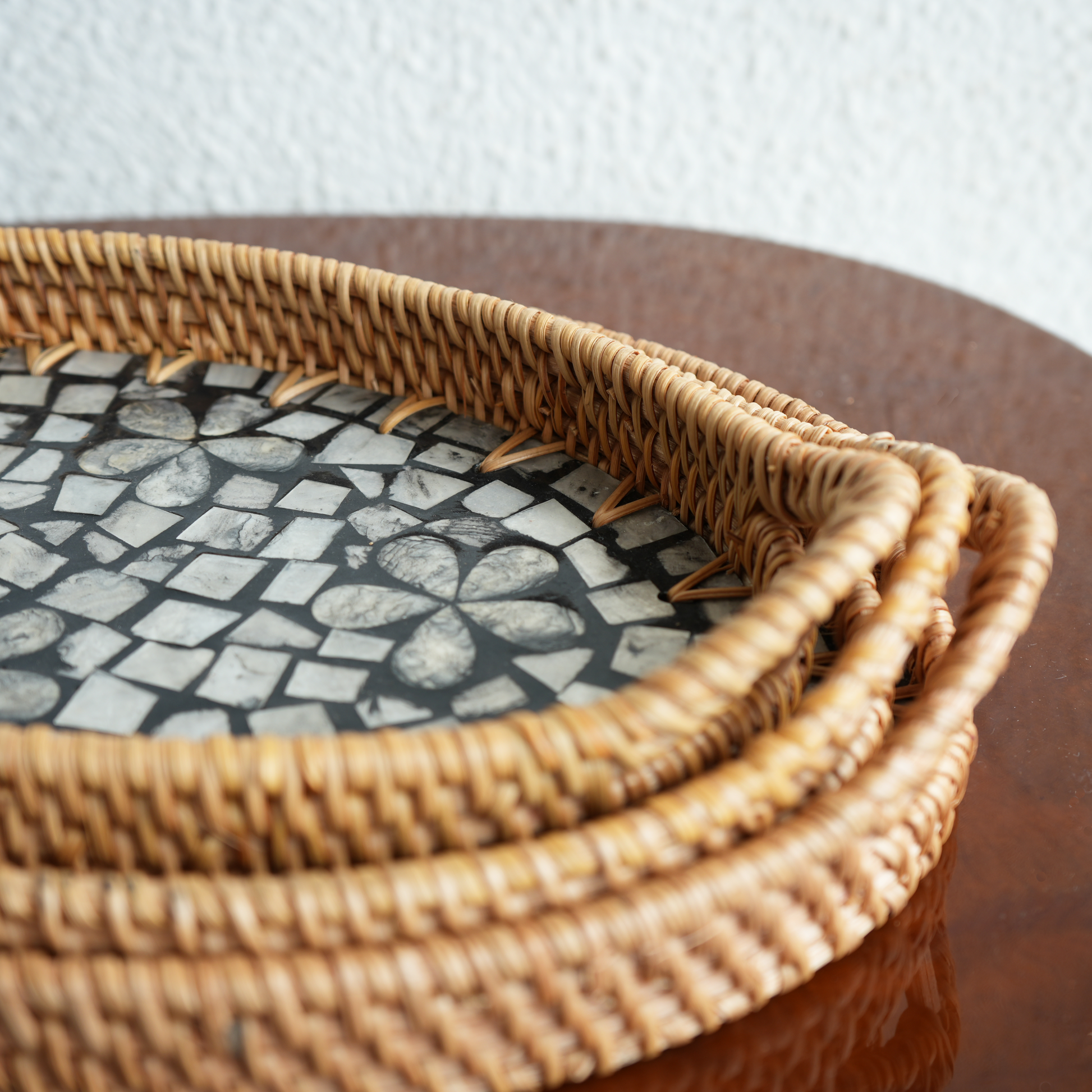 Medium Oval Mother-of-Pearl & Cane Serving Tray - Noir