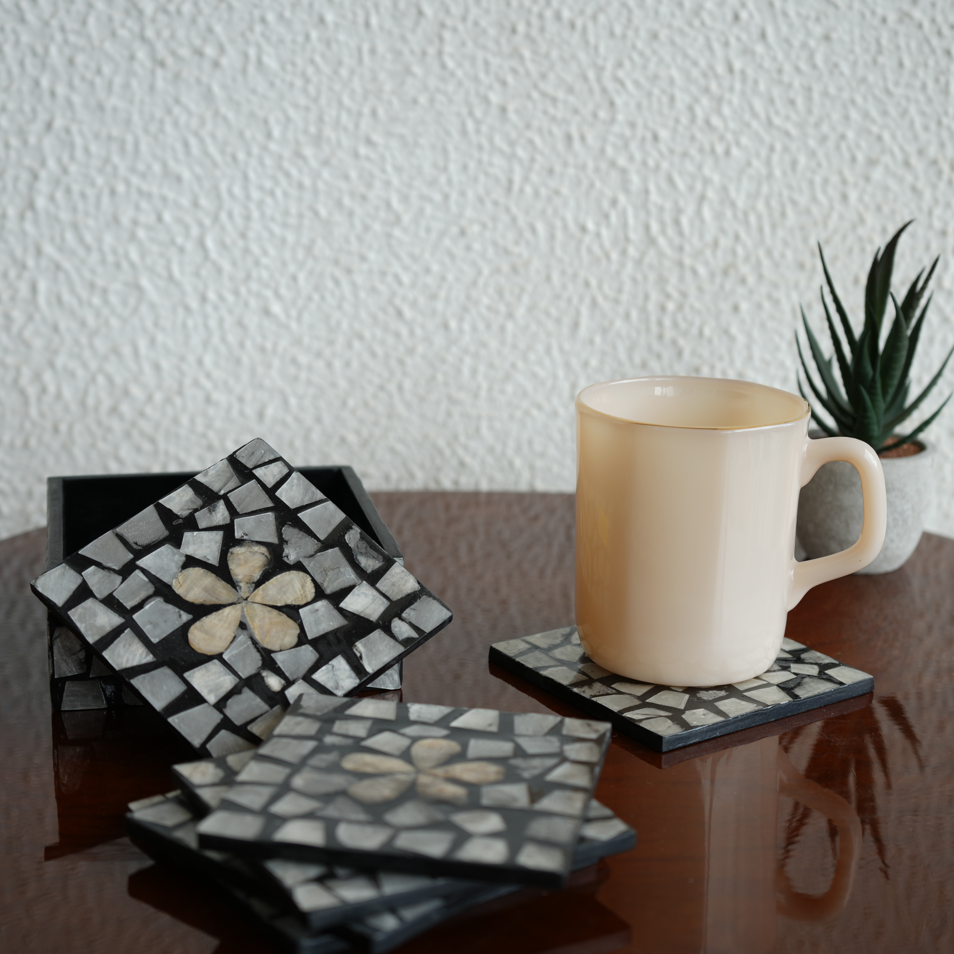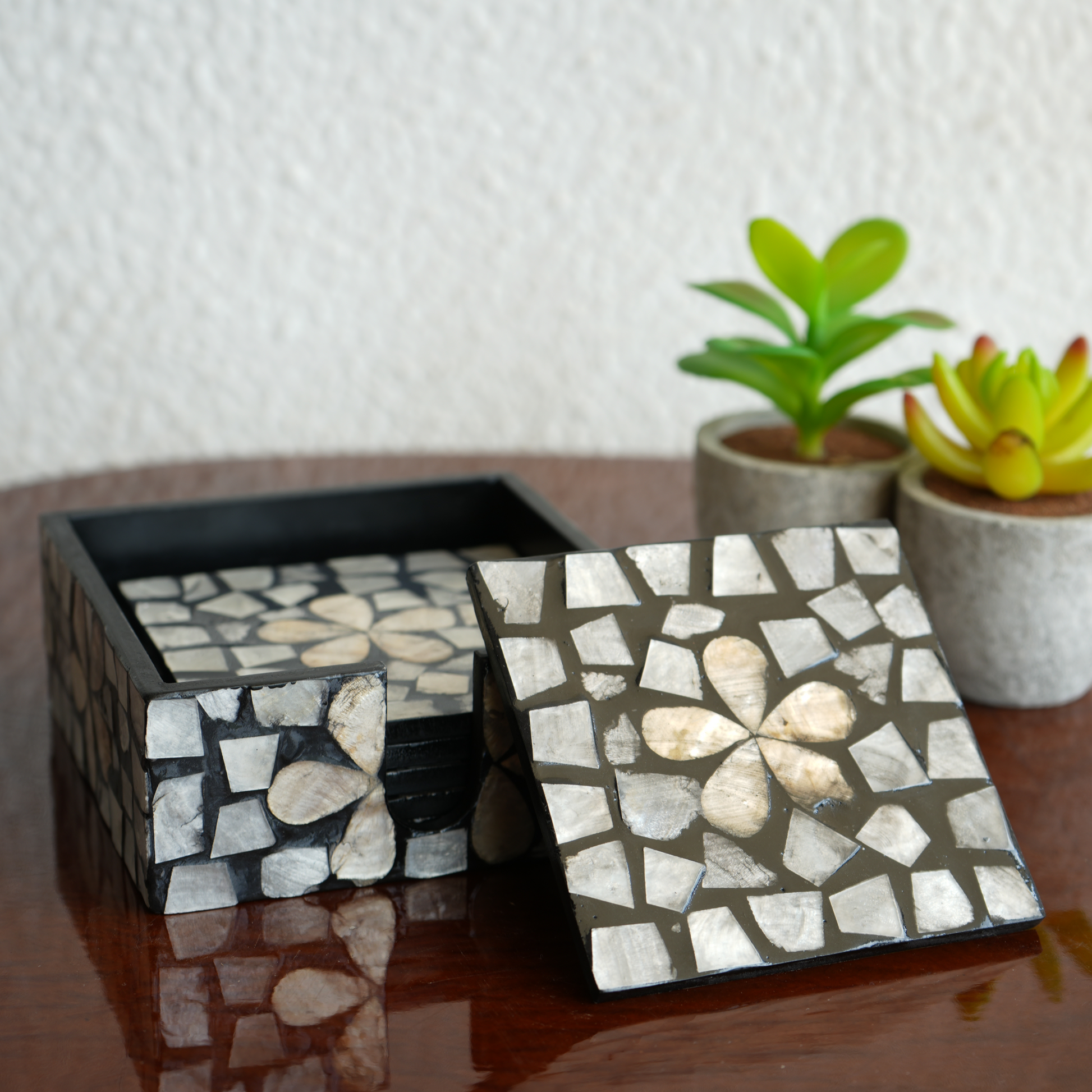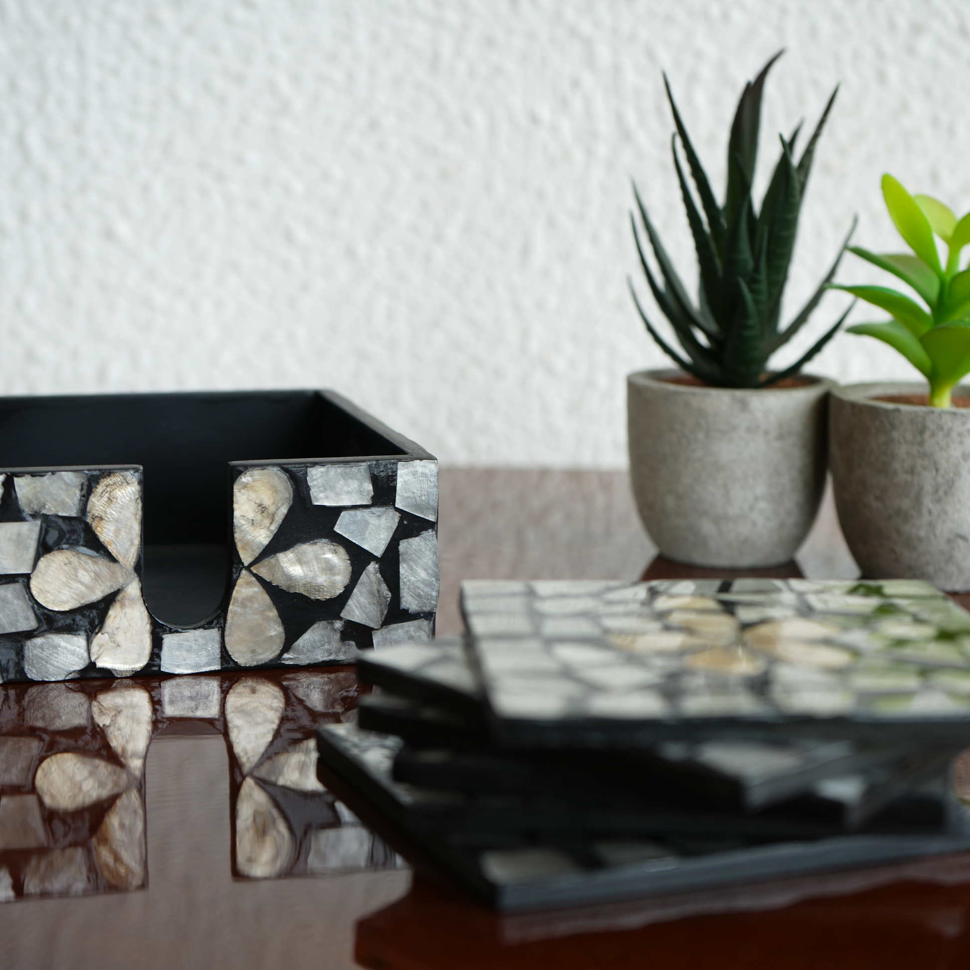 handcrafted with natural shell inlay, they protect surfaces while doubling as chic décor accents.