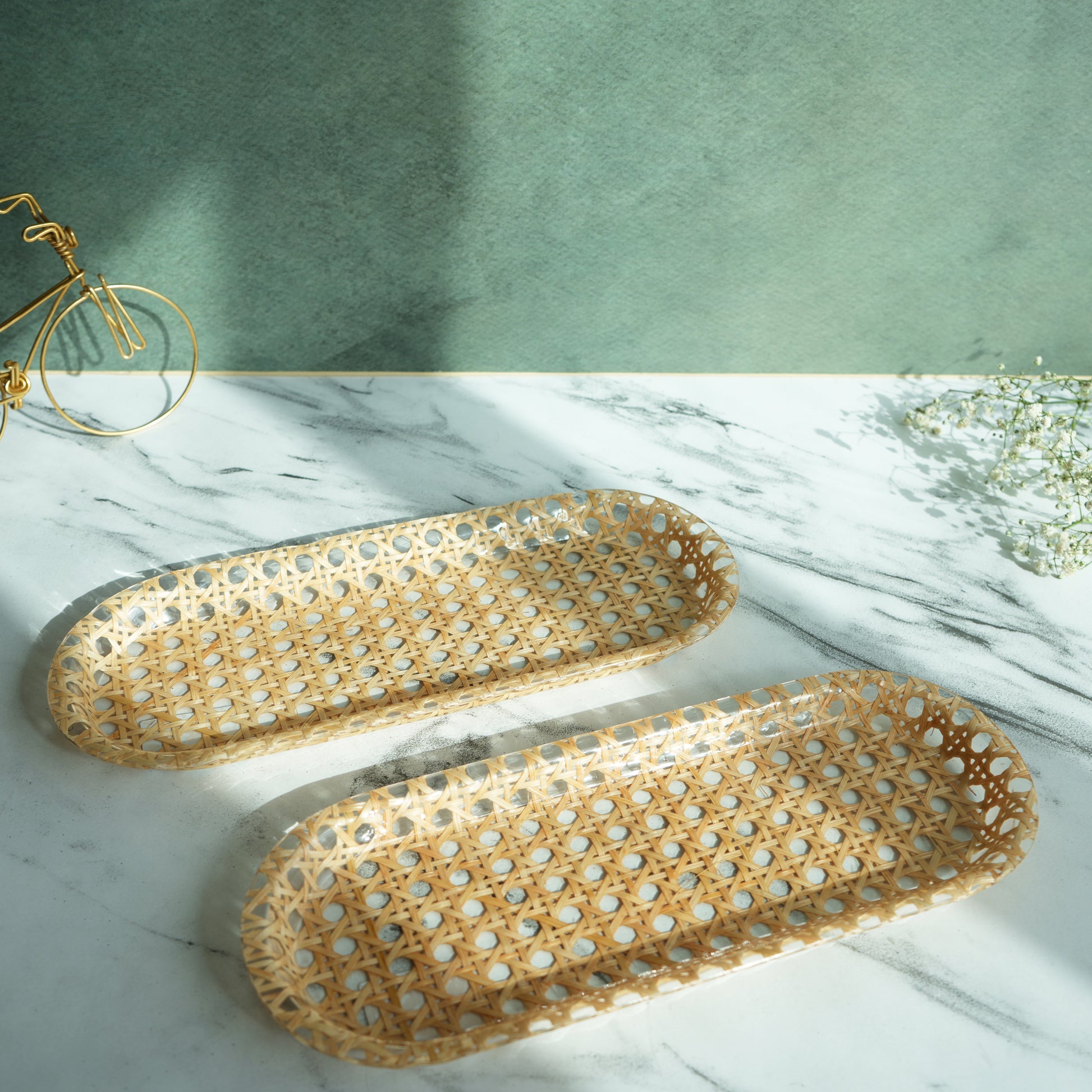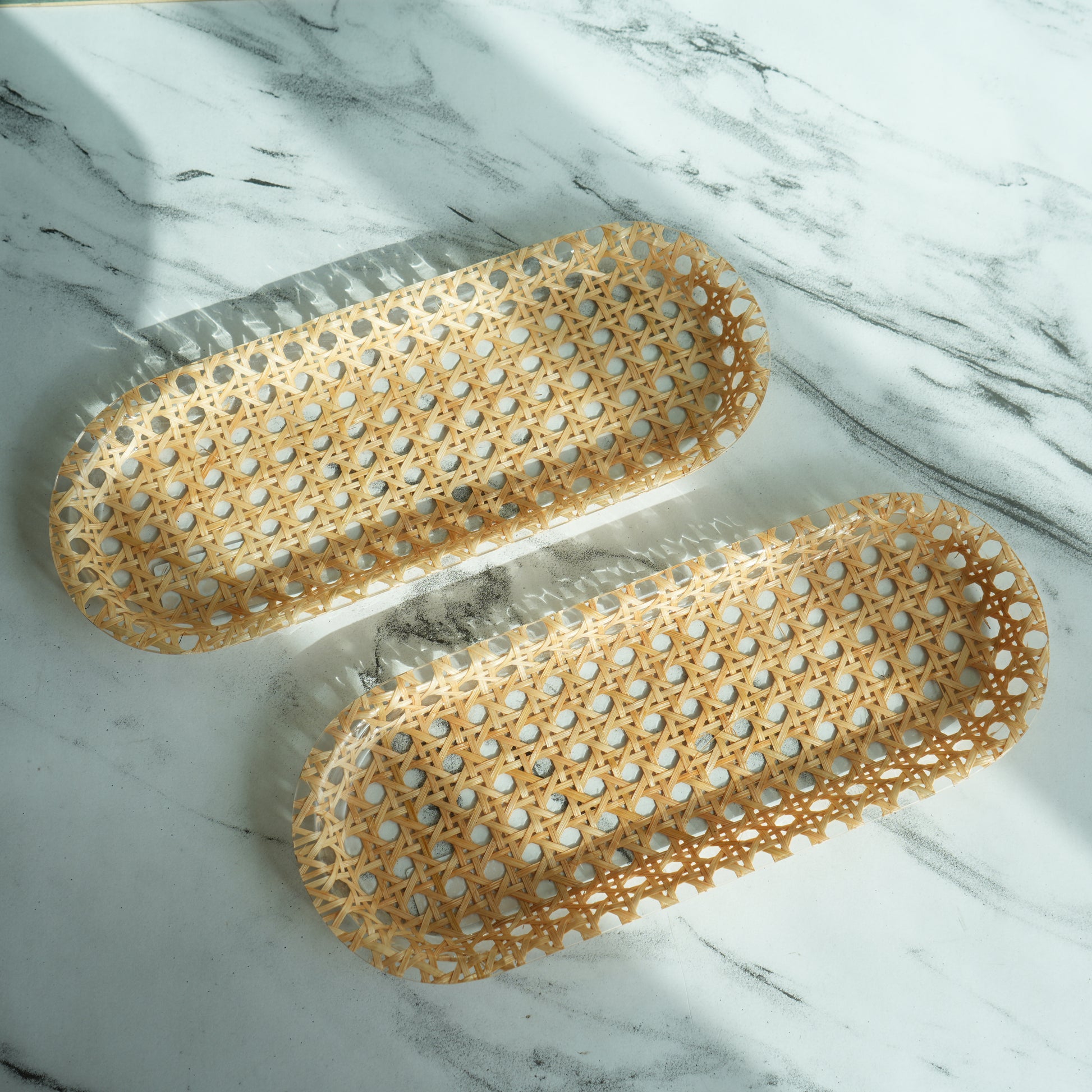 Rattan Ribbed Acrylic Oblong Serving Tray- Pack of 2