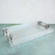 Ribbed Acrylic Serving Tray with Gray PU Straps- Set of 2