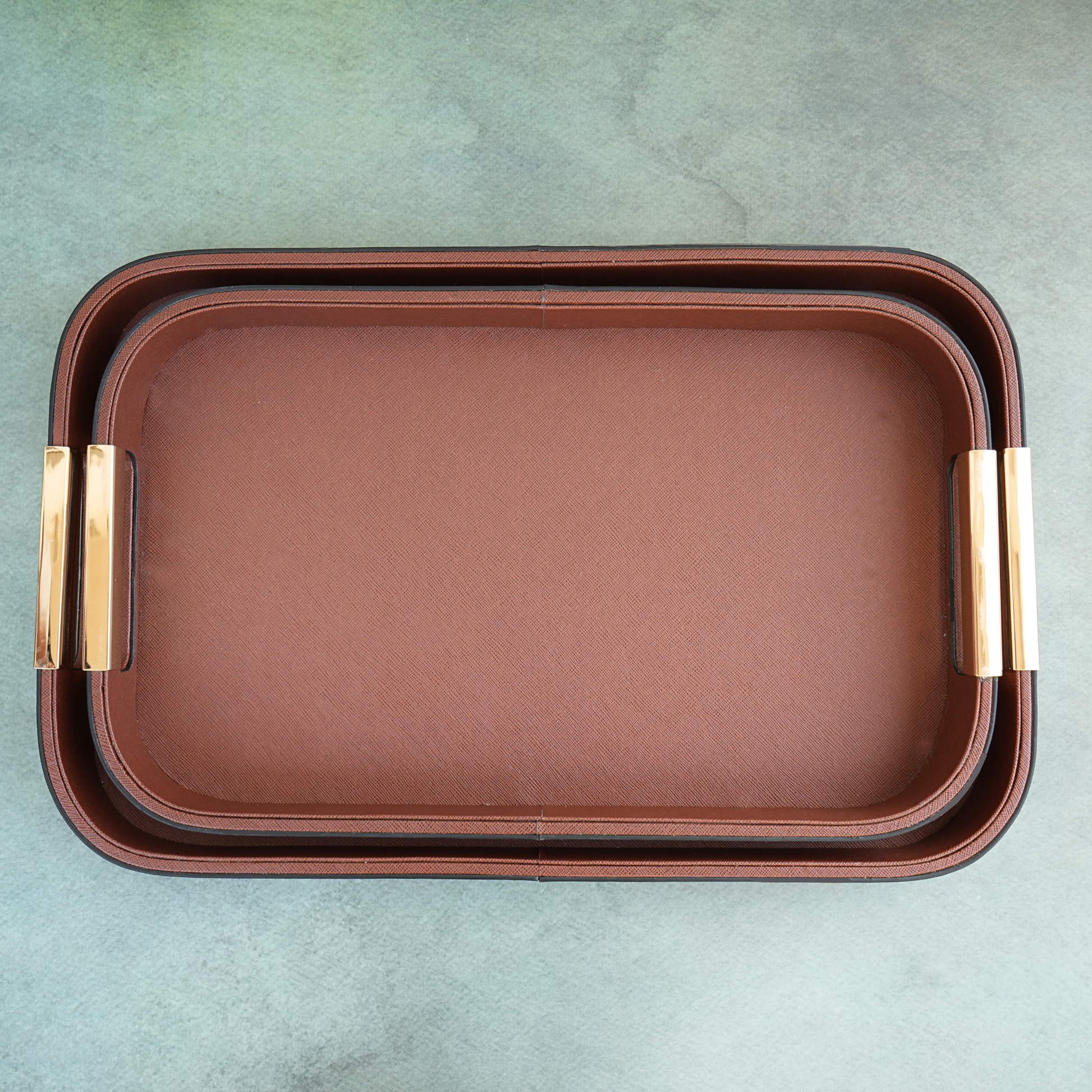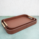 Add a touch of elegance to your table with this leather serving tray set of two. The structured design, smooth finish, and sturdy side handles make it perfect for serving drinks, snacks, or for styling your coffee table. Each piece blends function with a refined, modern look.