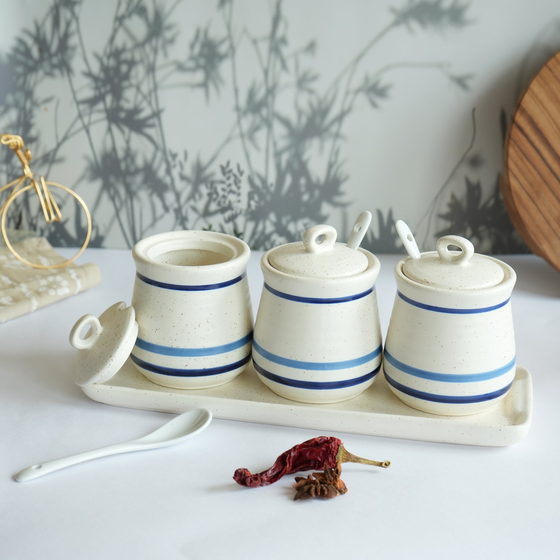 Set of 3 Ceramic Pickle Jars- White & Blue