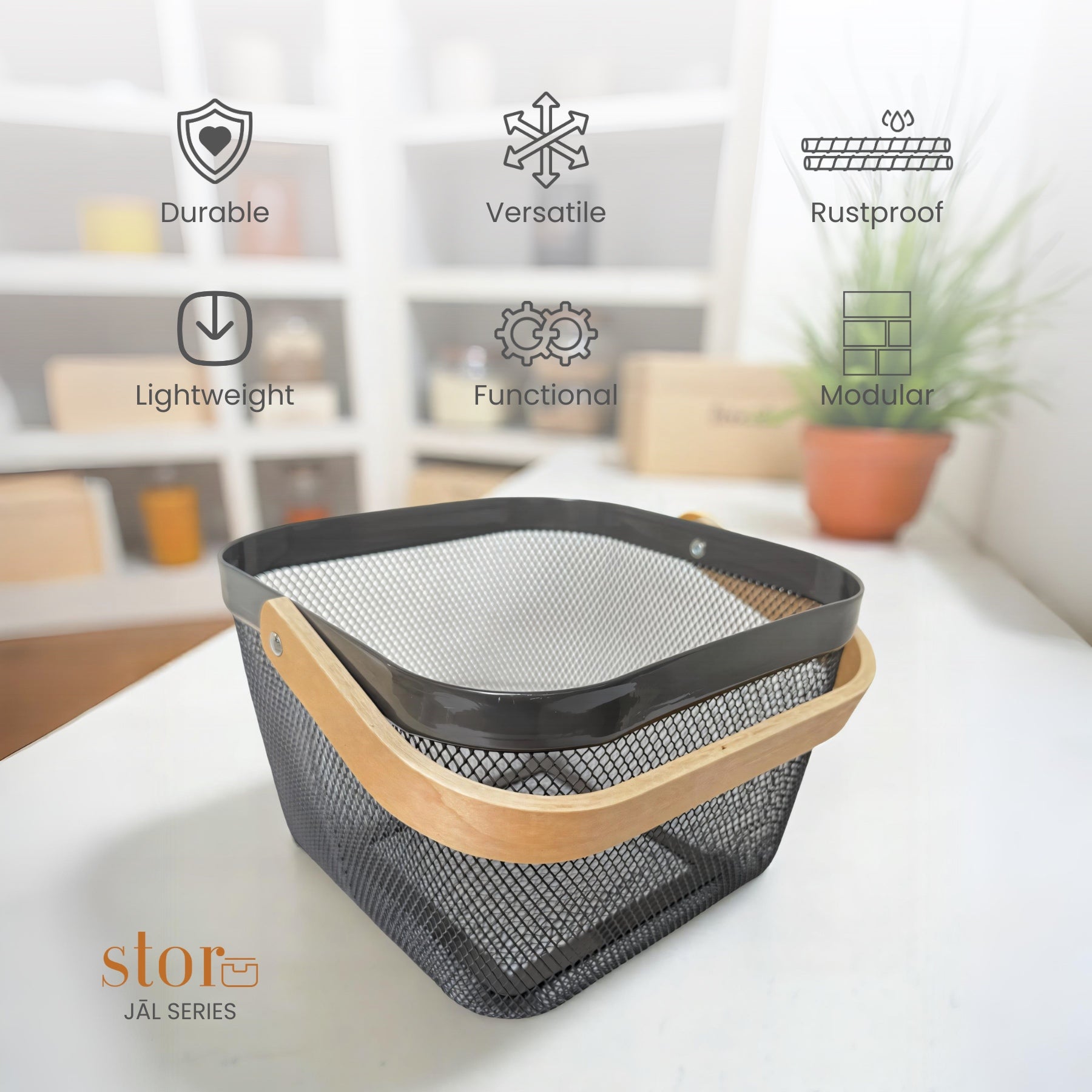 Organise effortlessly with our Square Mesh Storage Basket, crafted from durable, powder-coated metal for a sturdy yet lightweight design. Its open-mesh structure allows for easy visibility and airflow, making it perfect for storing office supplies, kitchen essentials, toiletries, and more. A versatile, space-saving solution to keep any space neat and clutter-free!